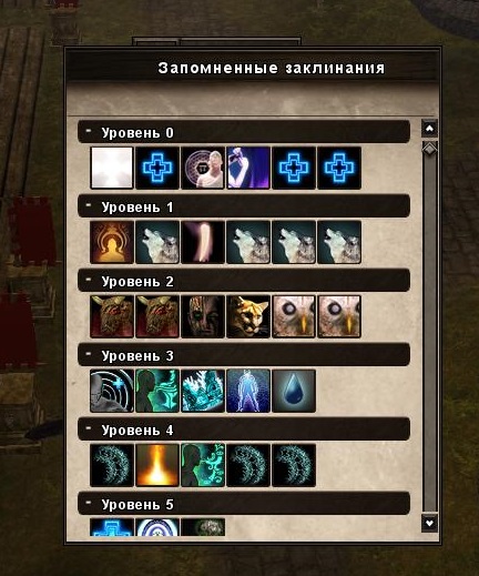 mikysya, как предположение: а вы открывали именно книгу заклинаний, а не панель? Книга открывается по умолчанию нажатием B(И), и нужные заклинания нужно сначала перенести из известных в запомненные, а потом поспать, чтобы они закрепились в памяти: Просто очень странно, что Элани не доступны нужные заклинания - второй круг у нее к приходу в Скаймиррор точно должен бы быть.