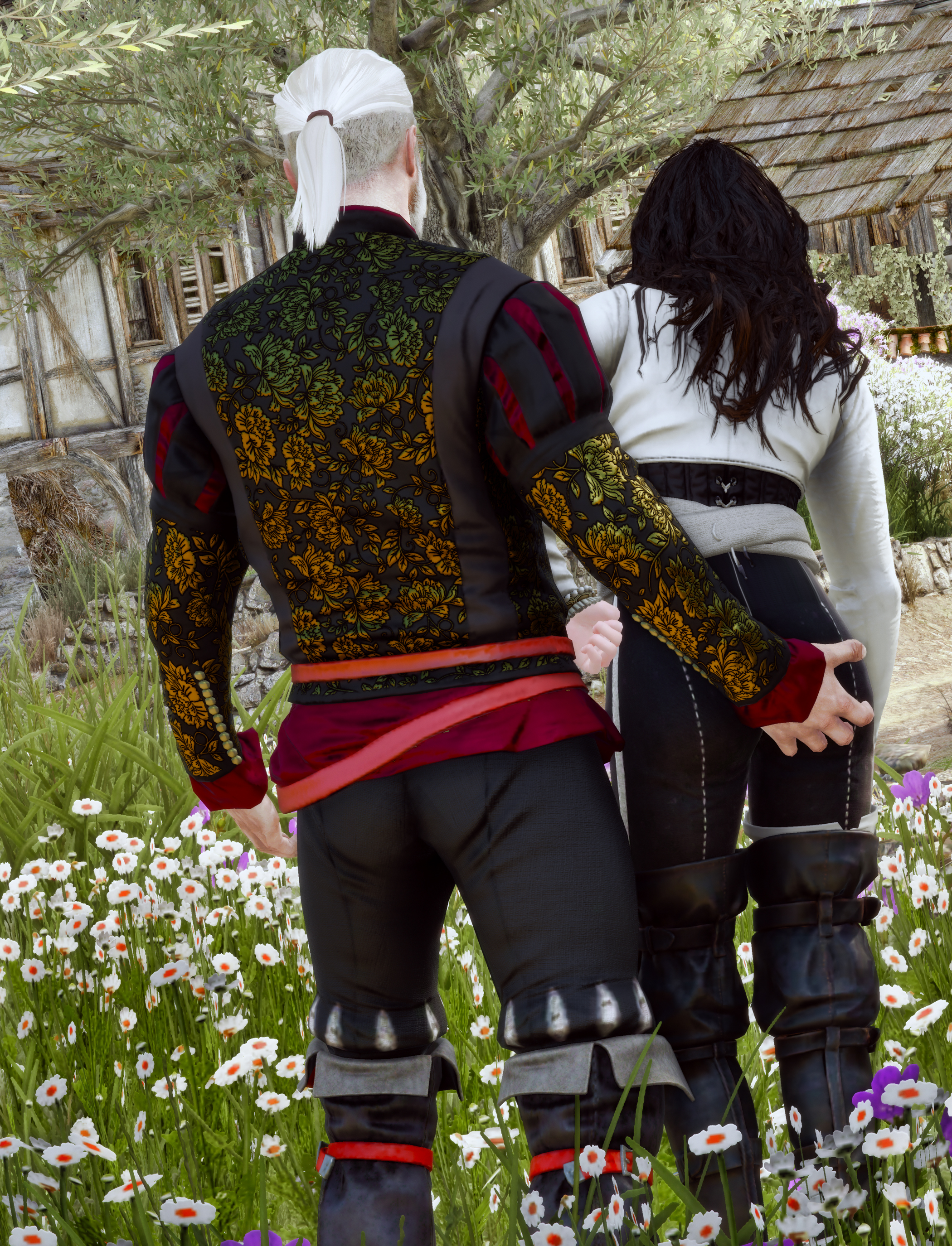 - Геральт, любовь всей моей жизни! Посмотри на эти прелестные подсолнухи! Мы просто обязаны хотя бы раз устроить в них междусобойчик! - Трисс, душа моя! Посмотри на них внимательно! Качество текстур даже не 1К! Боюсь, у меня ничего не получится...