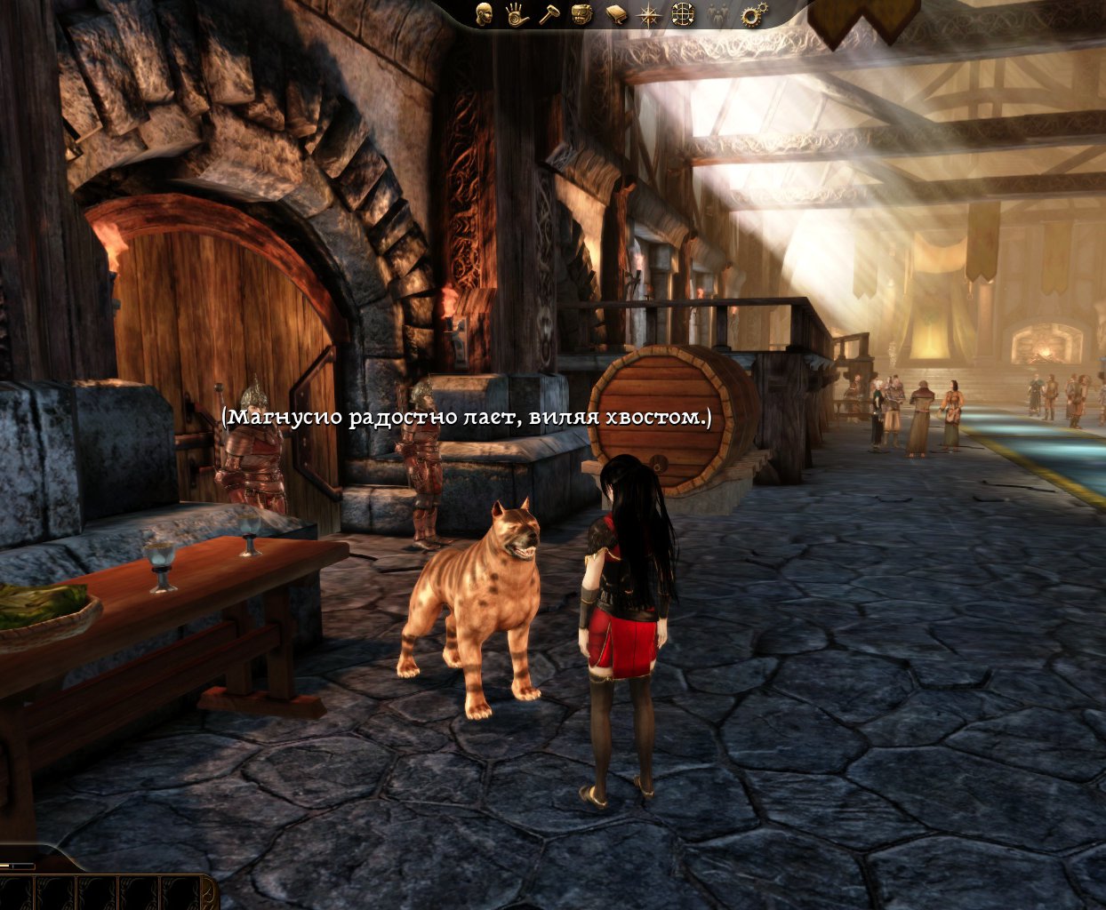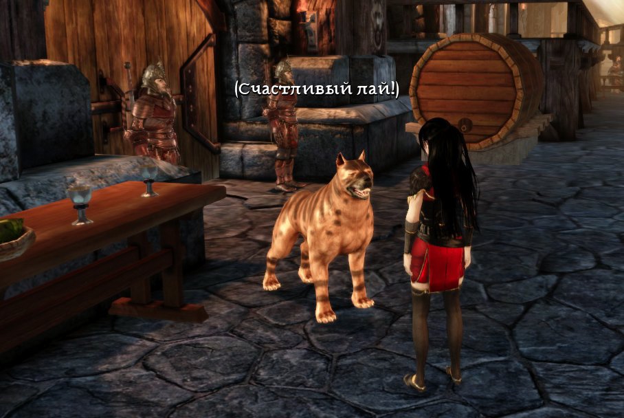 Теперь вы можете попрощаться с мабари, так же как и со всеми вашими спутниками.)) Маленький диалог после коронации с уже хорошо знакомой вам анимацией.) Имя вашего питомца так же будет отображаться.