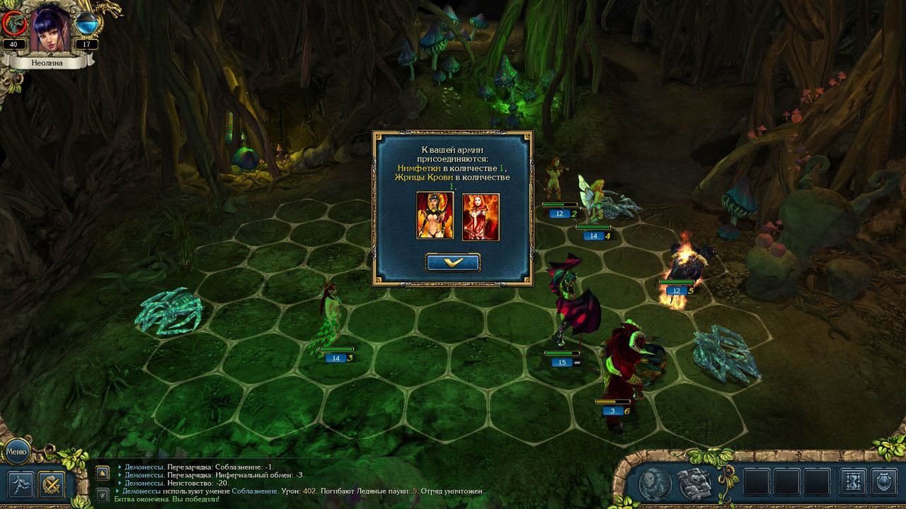 Таким образом, принеся их в жертву вы быстро пополните свой отряд когда надо, на лидерство вашей героини. Можно Демонессой взять под контроль вражеский отряд и принести его в жертву, по вашему выбору пополнив любой свой отряд.