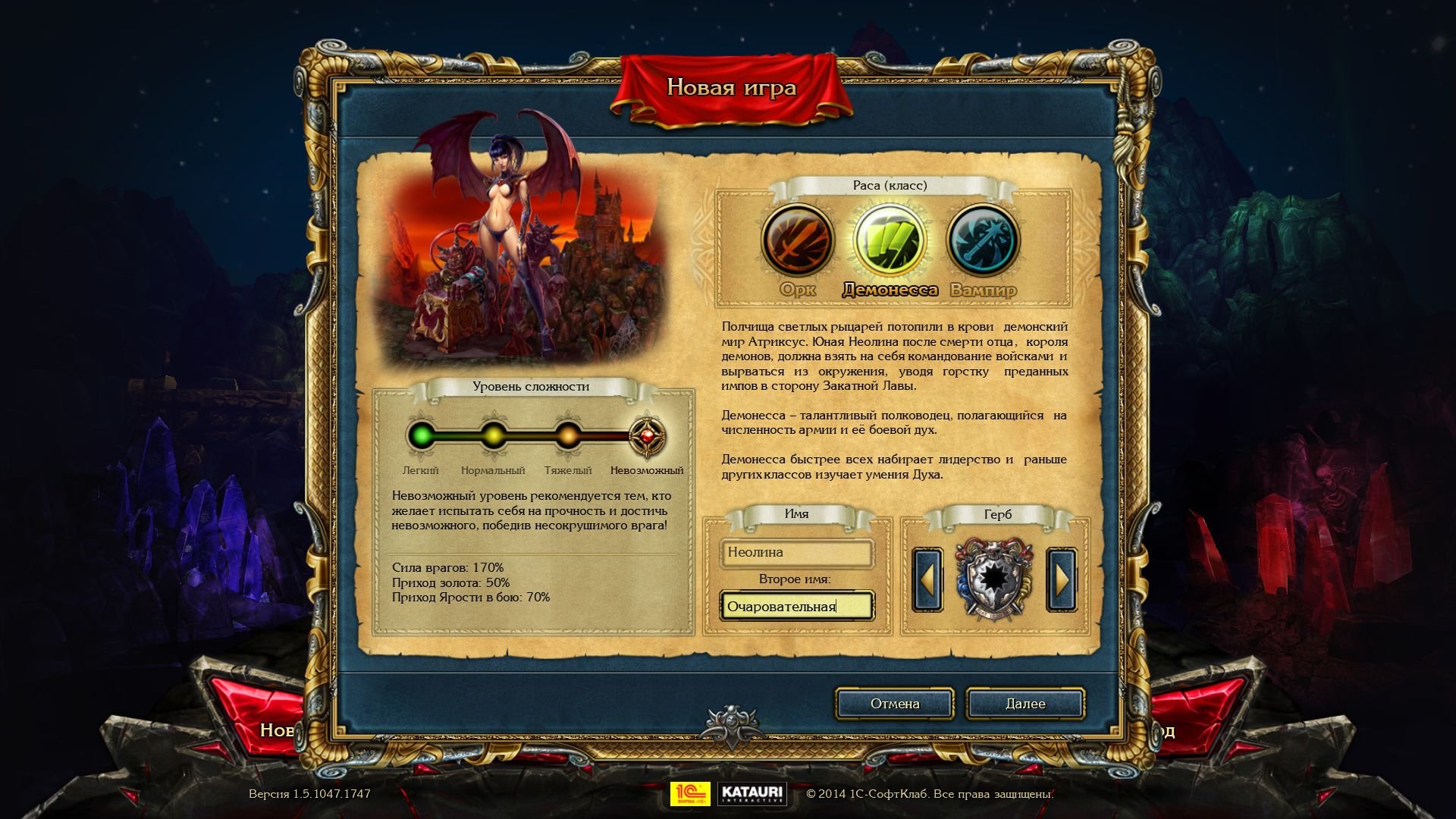 Можете сменить главную героиню, мою Демонессу на Жрицу крови Кинию, для этого не нужно начинать новую игру, в любое время.