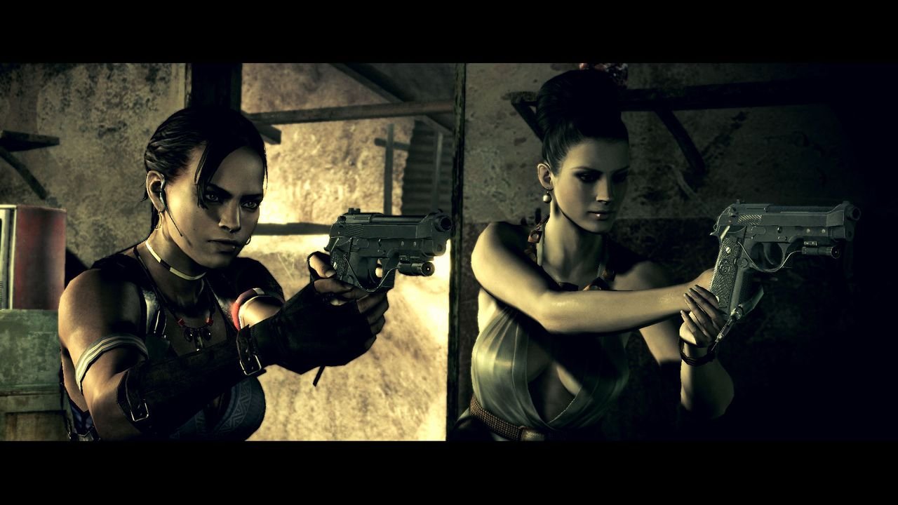 В главе 1-1, Крис изменится на Шеву, сразу как возьмет в руки оружие и пройдет кат-сцена, в ней Шева заряжает пистолет.