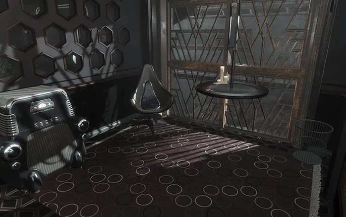 В самом сердце Добрососедства находятся "Неоновые квартиры" - высокотехнологичные апартаменты в киберстиле, пространство которых так же безжизненно, как и их обитатели. Когда-то управляемое искусственным интеллектом, это футуристическое жилище теперь ваше. Вас ждут два этажа с возможностью персонализации и более 30 новых предметов мебели для мастерской, включая современную мебель и одежду, выполненные в элегантной хакерской эстетике. Установка и удаление стандартные. ESM, BA2.