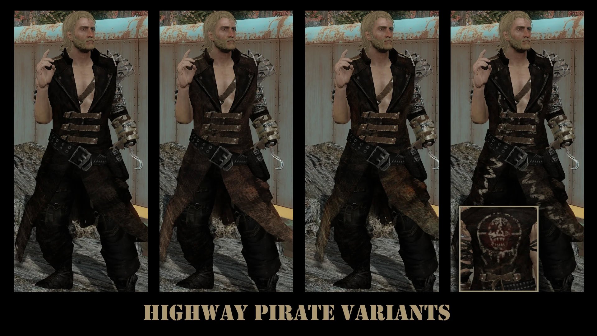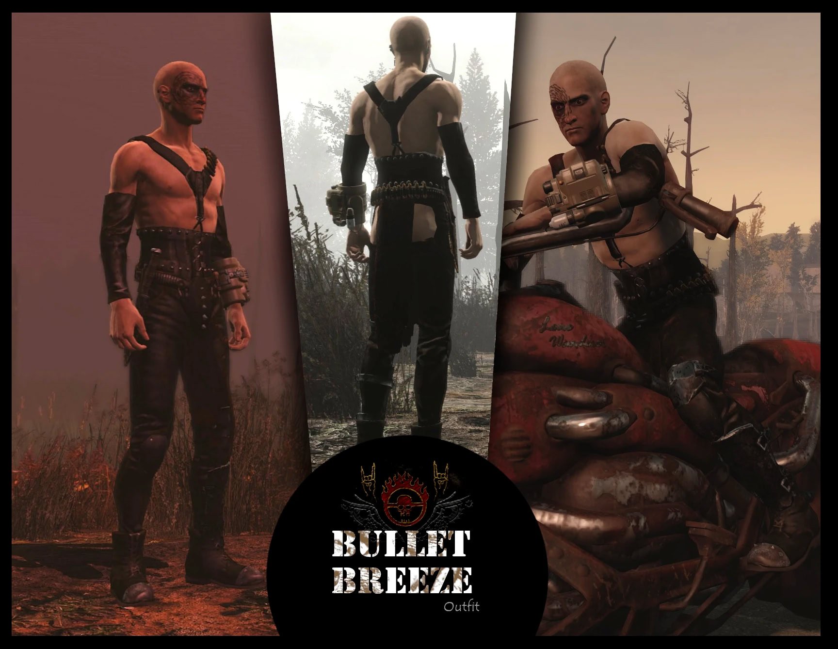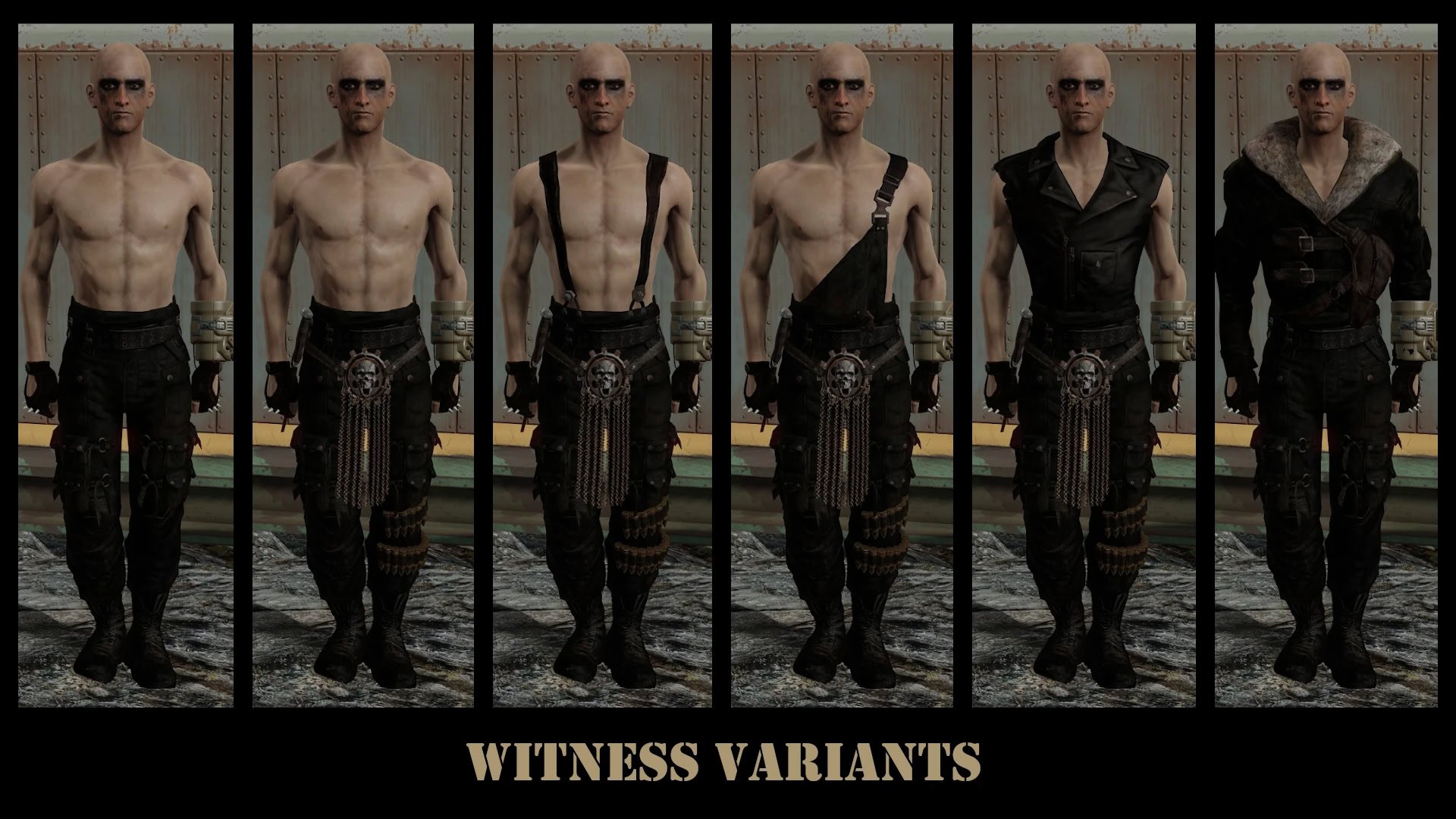 Предлагает коллекцию поношенной одежды по мотивам фильмов «Безумный Макс», в основном из серий «Дорога ярости» и «Воин дороги». Все костюмы и аксессуары предназначены как для мужских, так и для женских персонажей. Взгляд «Безумного Макса» на постапокалипсис сильно отличается от версии Fallout, но у них также есть приличное количество общих черт. Хотя мод сильно вдохновлен этой франшизой, ни один из костюмов не является копией оригинала и был изменен, чтобы лучше вписаться в эстетику Fallout 4.Только для ванильных тел. Патча для СВВЕ пока нет, но и мод появился только вчера. Всю эту одежду и аксессуары можно изготовить в химлаборатории ("Бензак-снаряжение") и улучшить с помощью баллистической ткани.Требования: Far Harbor Установка и удаление стандартные.