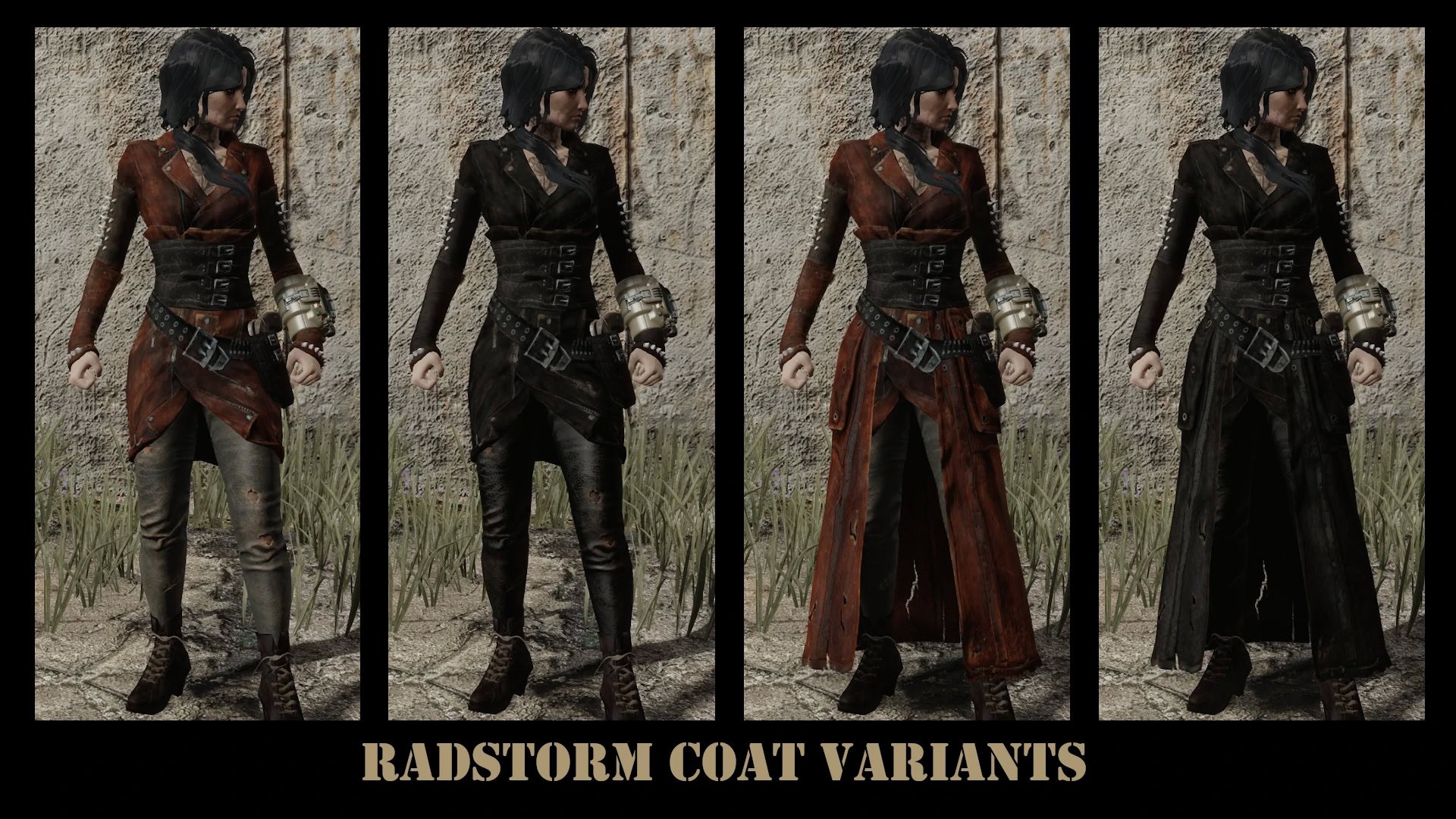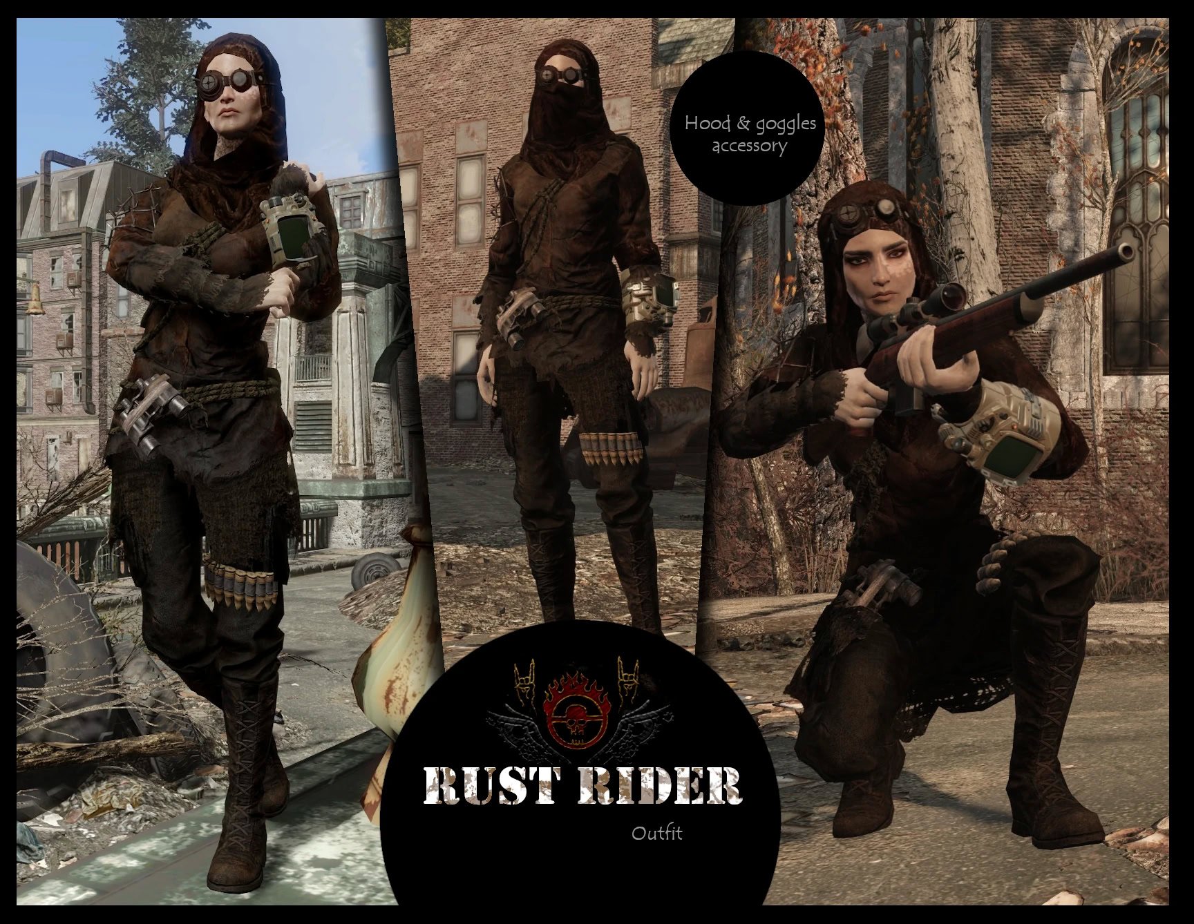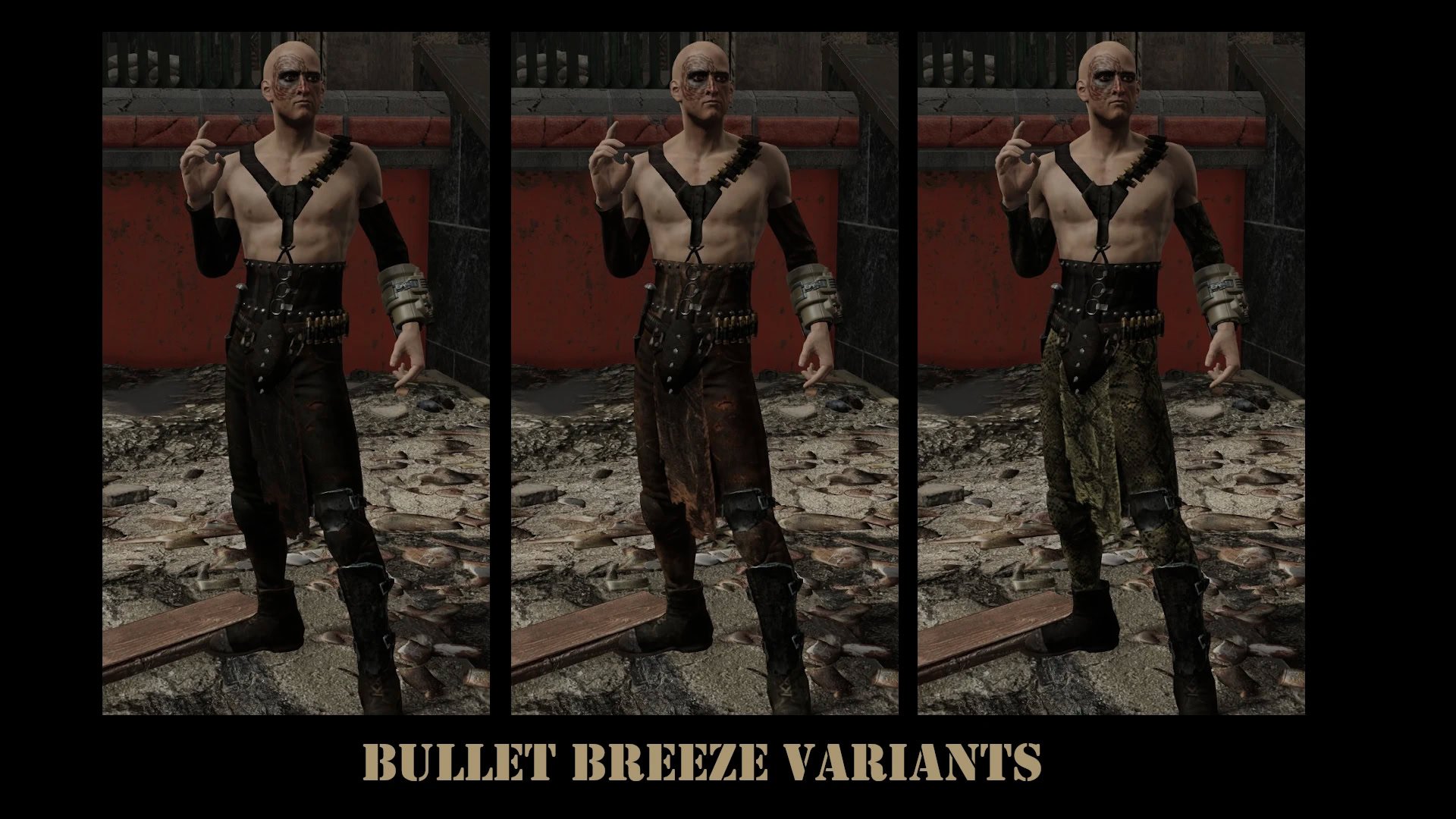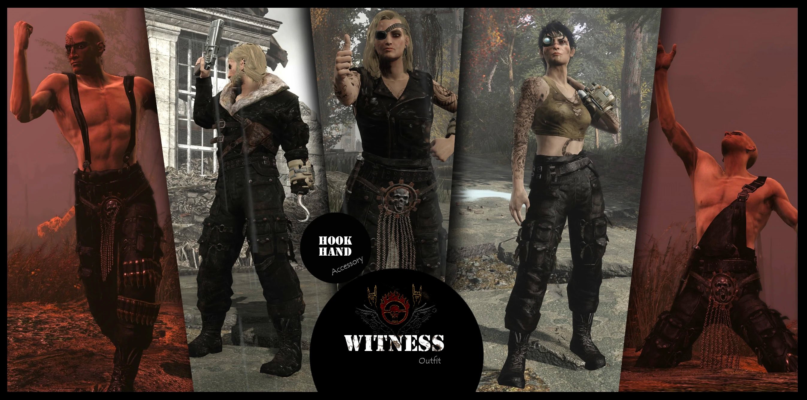 Предлагает коллекцию поношенной одежды по мотивам фильмов «Безумный Макс», в основном из серий «Дорога ярости» и «Воин дороги». Все костюмы и аксессуары предназначены как для мужских, так и для женских персонажей. Взгляд «Безумного Макса» на постапокалипсис сильно отличается от версии Fallout, но у них также есть приличное количество общих черт. Хотя мод сильно вдохновлен этой франшизой, ни один из костюмов не является копией оригинала и был изменен, чтобы лучше вписаться в эстетику Fallout 4.Только для ванильных тел. Патча для СВВЕ пока нет, но и мод появился только вчера. Всю эту одежду и аксессуары можно изготовить в химлаборатории ("Бензак-снаряжение") и улучшить с помощью баллистической ткани.Требования: Far Harbor Установка и удаление стандартные.