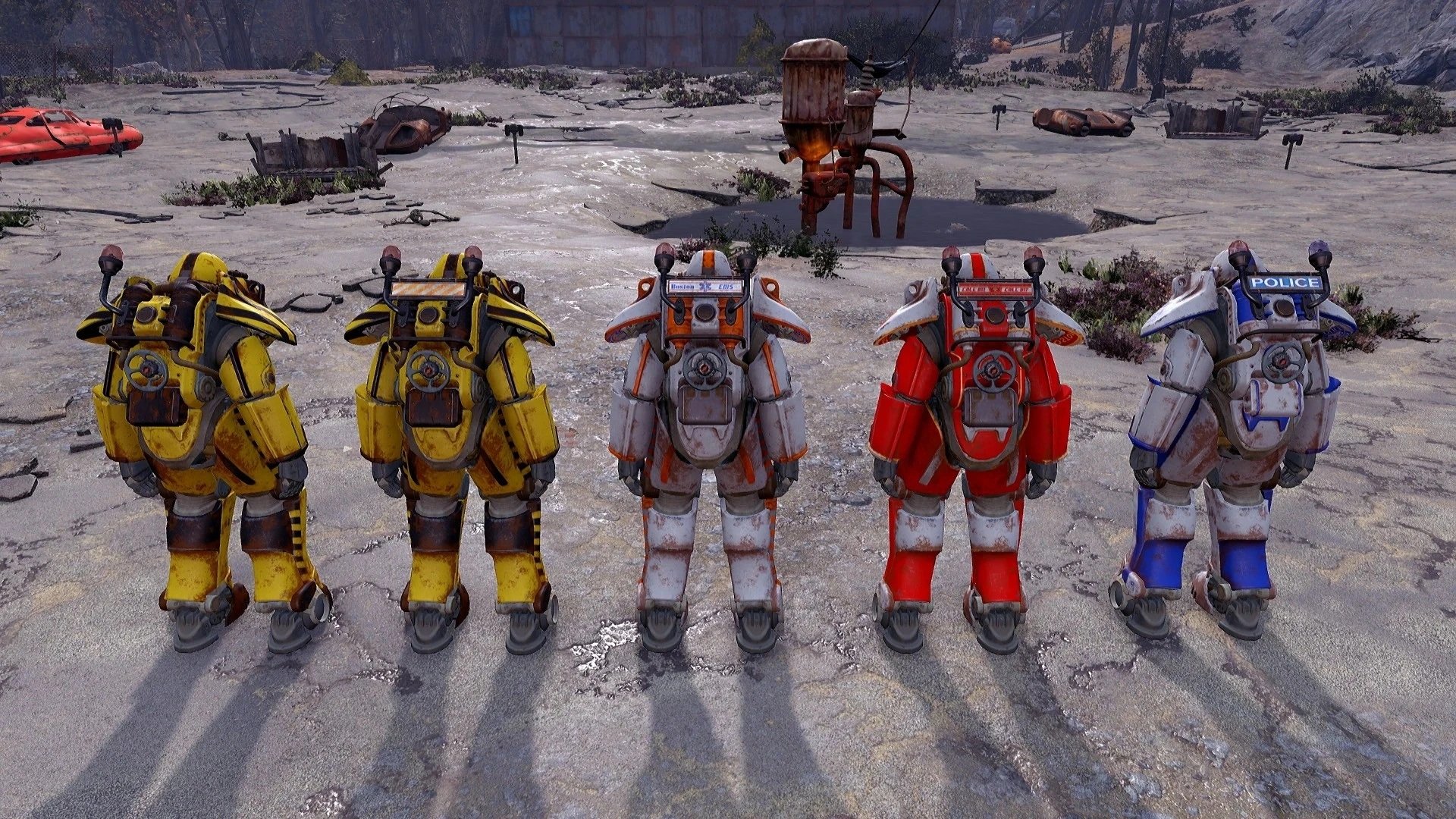 Рабочие АНИМИРОВАННЫЕ маячки полиции, пожарных, скорой помощи и строителей, а также премиальные окраски для всех моделей Ванильной Силовой брони. Всего 20 вариантов маячков и 16 вариантов окраски.