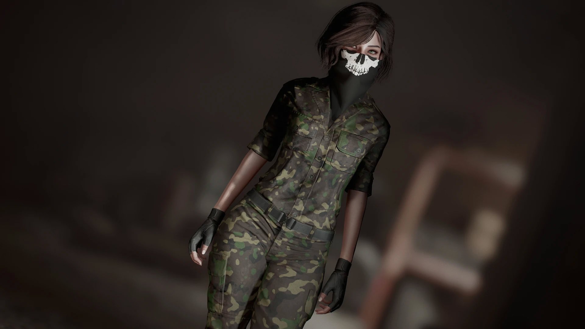Добавляет новый комплект одежды с пользовательскими камуфляжными расцветками и перчатками.
