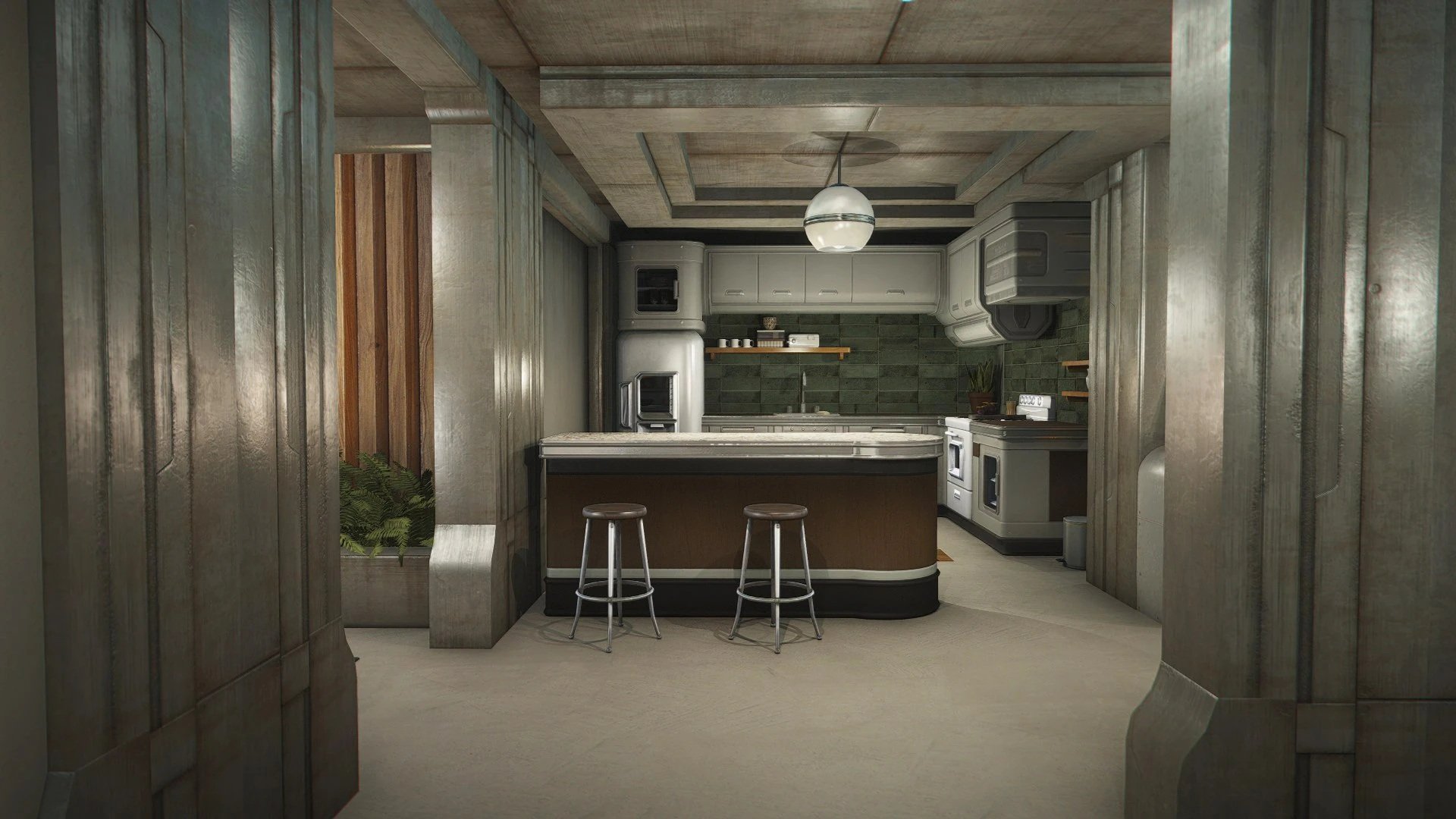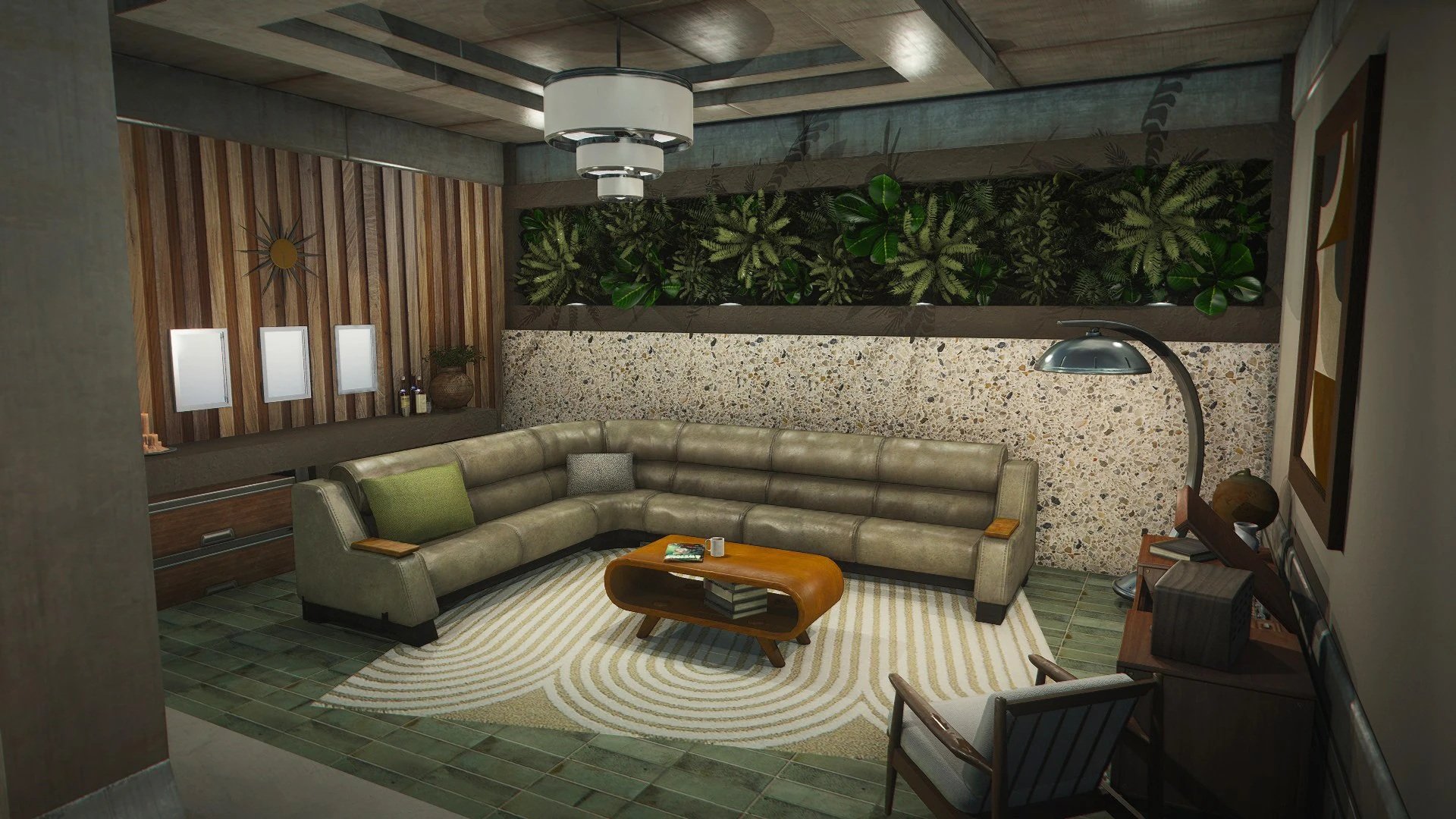 Дом имеет навмеши и совместим с компаньонами. В нем сочетаются современный, модернистский и индустриальный декор.