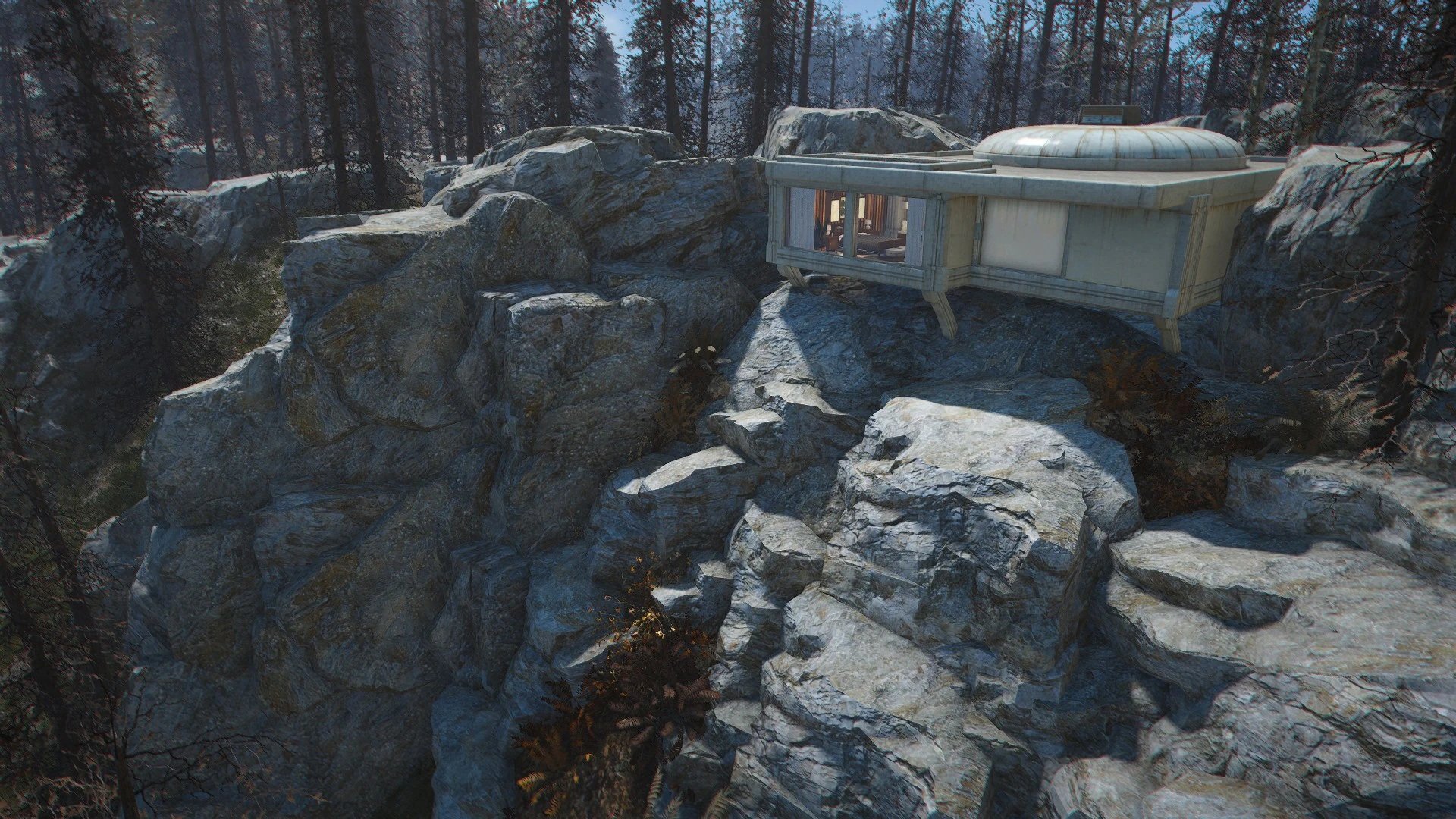 В доме есть работающая плита, кладовая и верстак для оружия. Сон в кровати даст вам бонус "заряд бодрости". Интерьер дома - это внутренняя локация, а спальня — внешняя.
