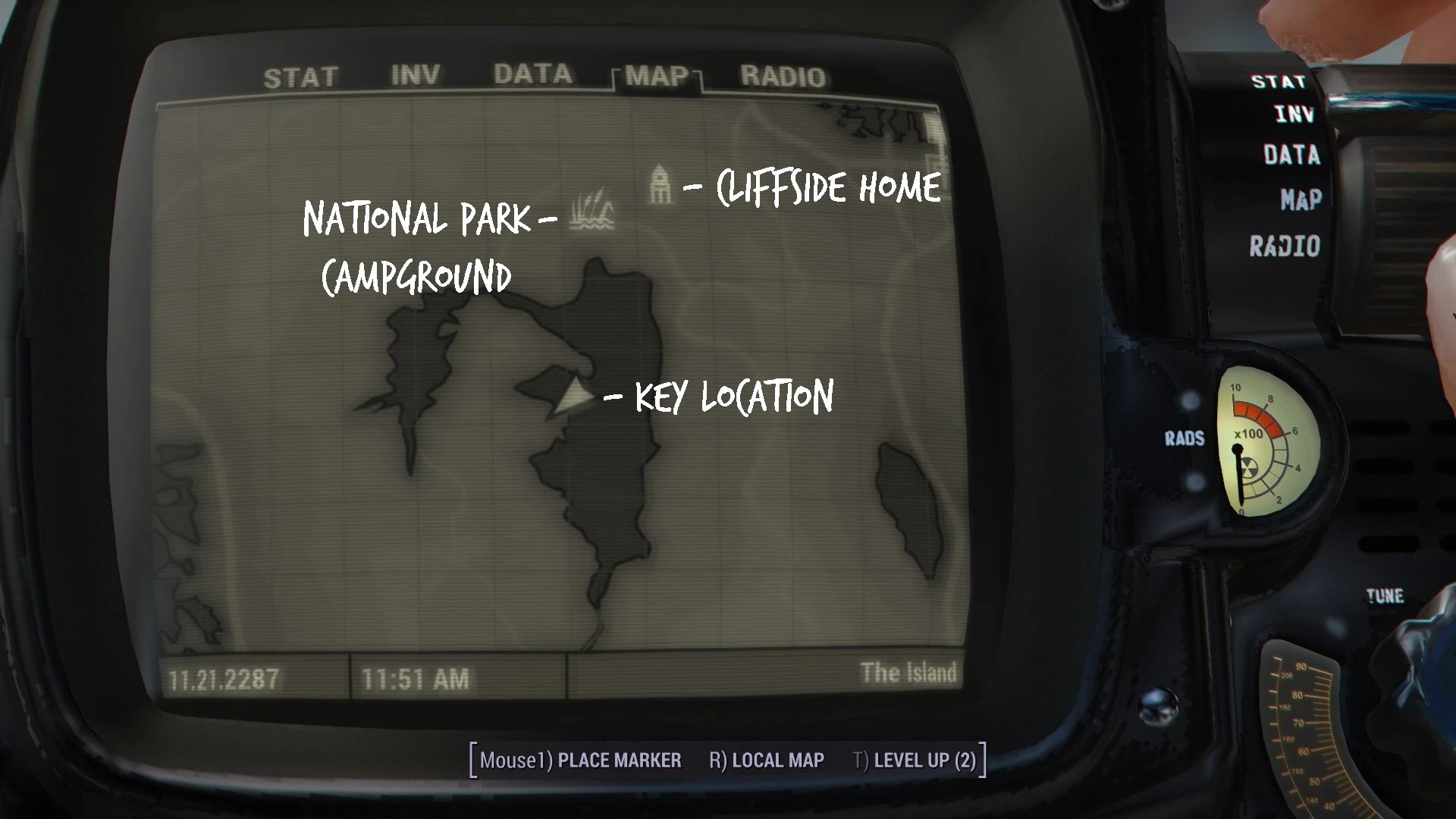 Место можно найти по метке на карте рядом с отелем "Клиффс Эдж" и лагерем национального парка. Вход немного скрыт в тумане - посмотрите между лагерем и скалами! В качестве альтернативы, воспользуйтесь быстрым перемещением к метке лагеря, затем поверните в противоположную сторону, обойдите гигантский папоротник, и вы увидите вход в скале.