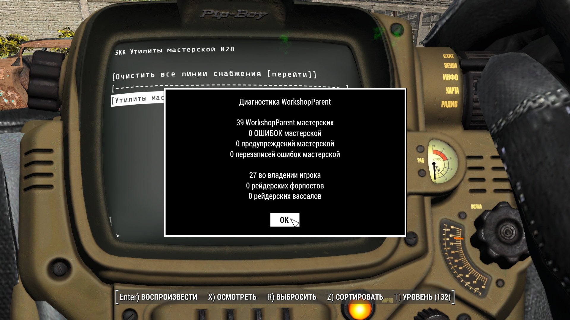 (22) Если сообщаются проблемы со списком мастерской, проверьте эту статью: SKK Workshop Utilities - Corrupt Workshop Listshttps://www.nexusmods.com/fallout4/articles/1343 Если вам предлагают вариант ПОПЫТАТЬСЯ ОТРЕМОНТИРОВАТЬ и вы хотите его использовать, сначала сохраните игру, так как нет гарантии, что все станет лучше. Система мастерской сложная и хрупкая, ковырять ее низкокачественными модами глупо. Для полной диагностики на ПК необходимо включить Debug Logging , а затем изучить ... \Documents\My Games\Fallout4\Logs\Script\User\SKK_WUTestWorkshopList_NNNNN.log