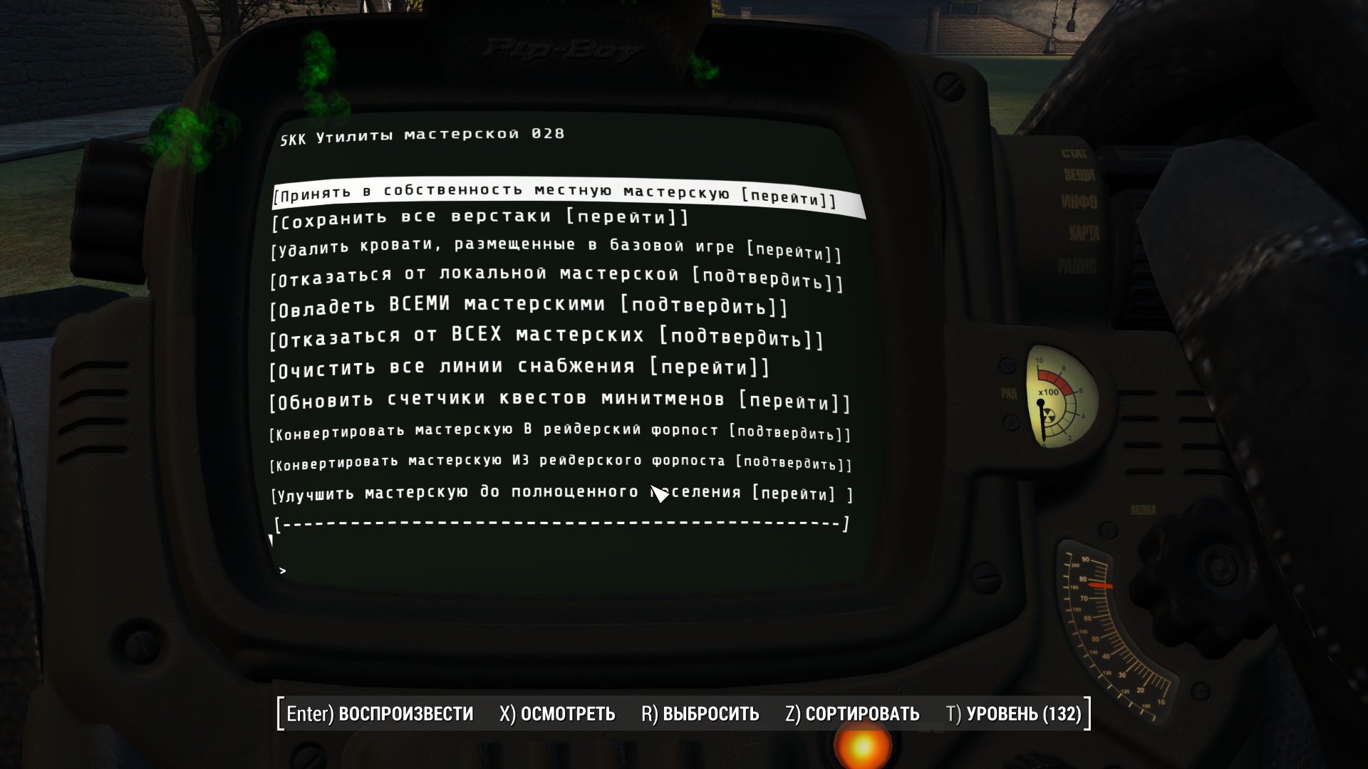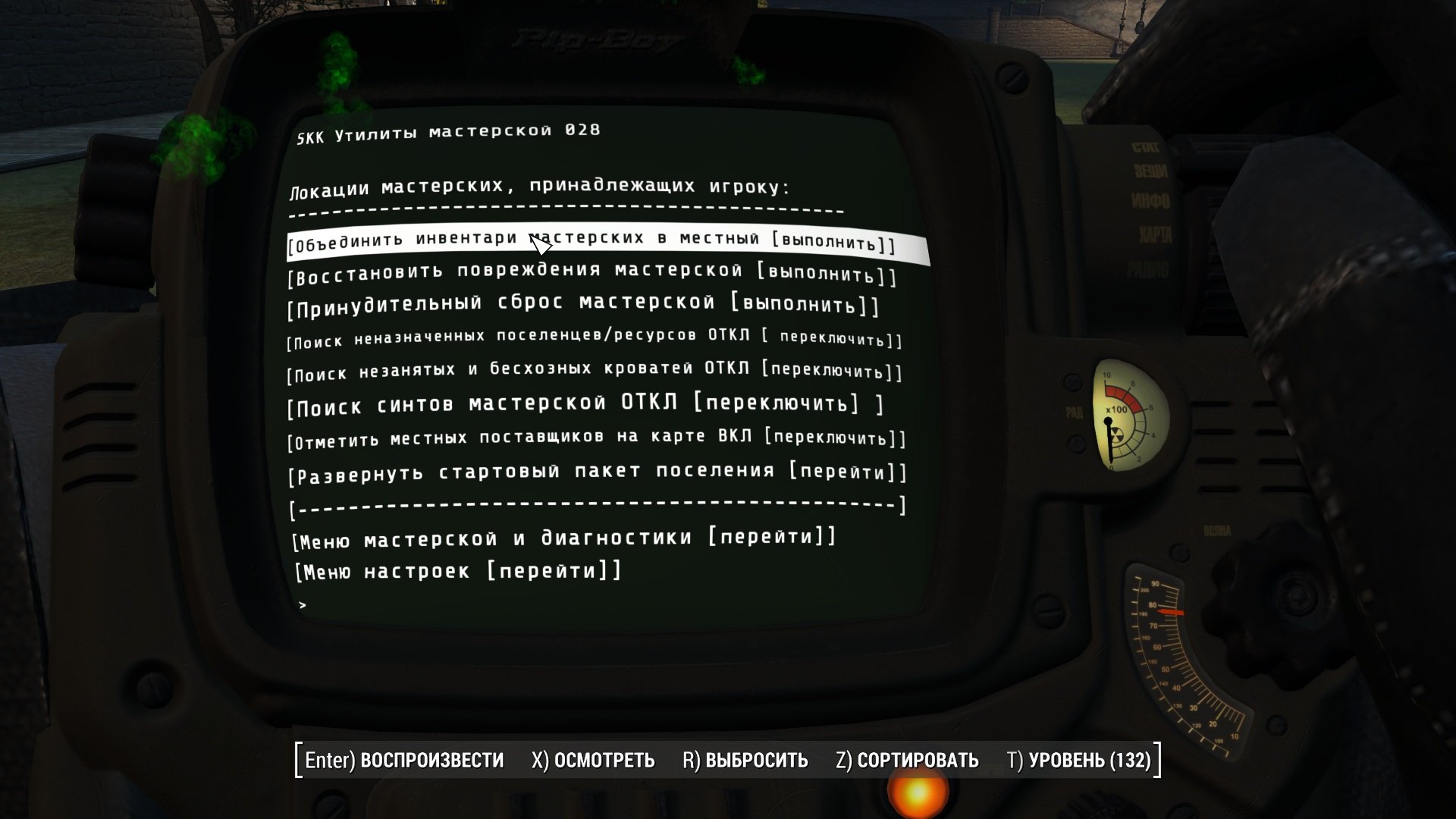 (3) Необязательное меню быстрой консолидации мастерской будет конфликтовать с любыми другими модами, которые добавляют третий параметр меню активации [Пробел] в Мастерские (перк AddActivate), поэтому ничего не отображается. К объекту можно добавить только один дополнительный параметр меню, поэтому выбирайте с умом.