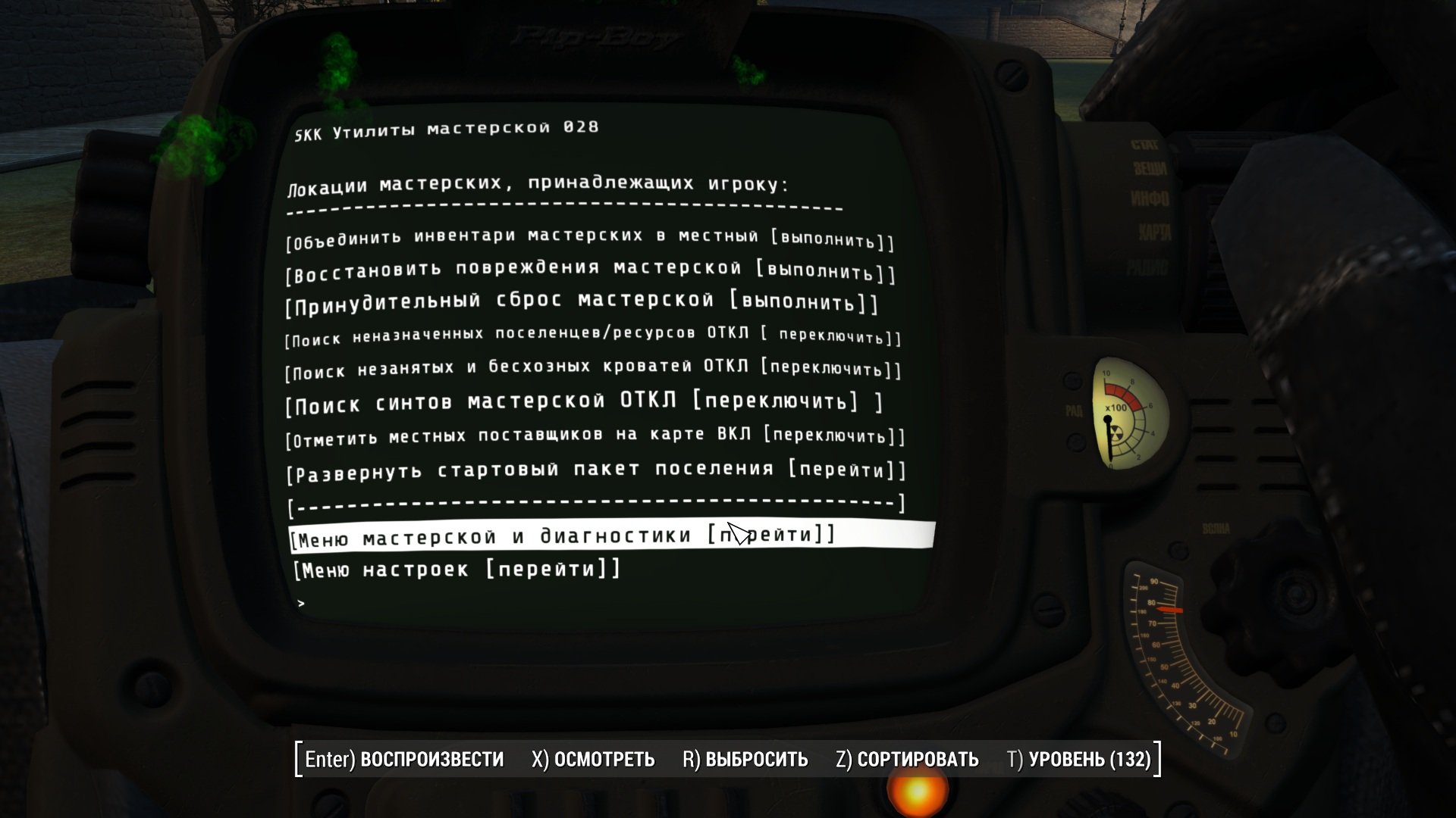 (25) Force ResetWorkshop: при попытке преобразовать автономную мастерскую в зарегистрированное поселение WorkshopParent в игре невозможно добавить важное ключевое слово LocTypeWorkshopSettlement в запись местоположения. Это означает, что расчеты ресурсов ResetWorkshop никогда не сработают, поэтому статистика мастерской будет неверной. В качестве обходного пути используйте эту функцию вручную каждый раз, когда вы посещаете мастерскую.