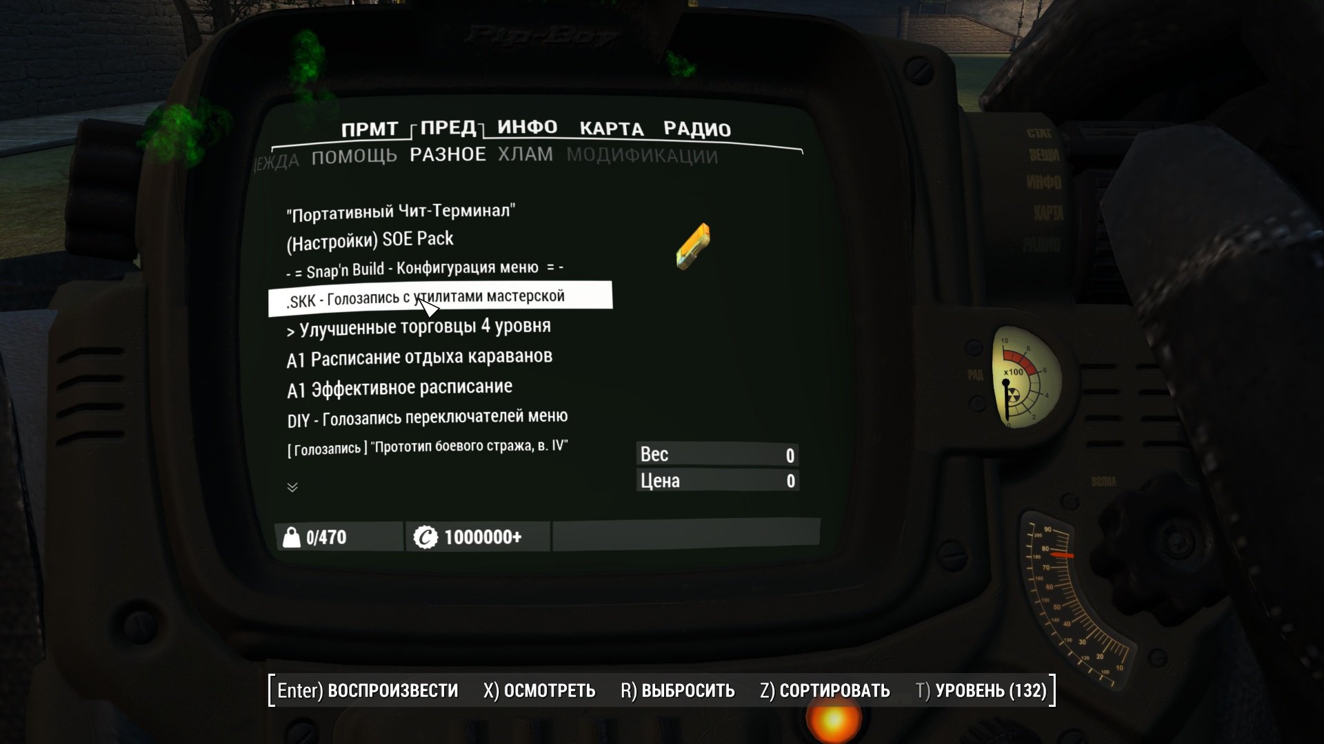 Установите этот мод в любое время в любой игре, так как он не вносит статических изменений в ваш мир. Игроку предоставляется голозапись [ .SKK Workshop Utilities ] в инвентаре MISC после выхода из убежища (или создания в химлаборатории/утилите):