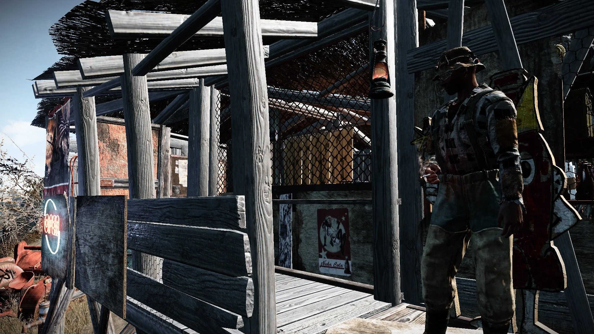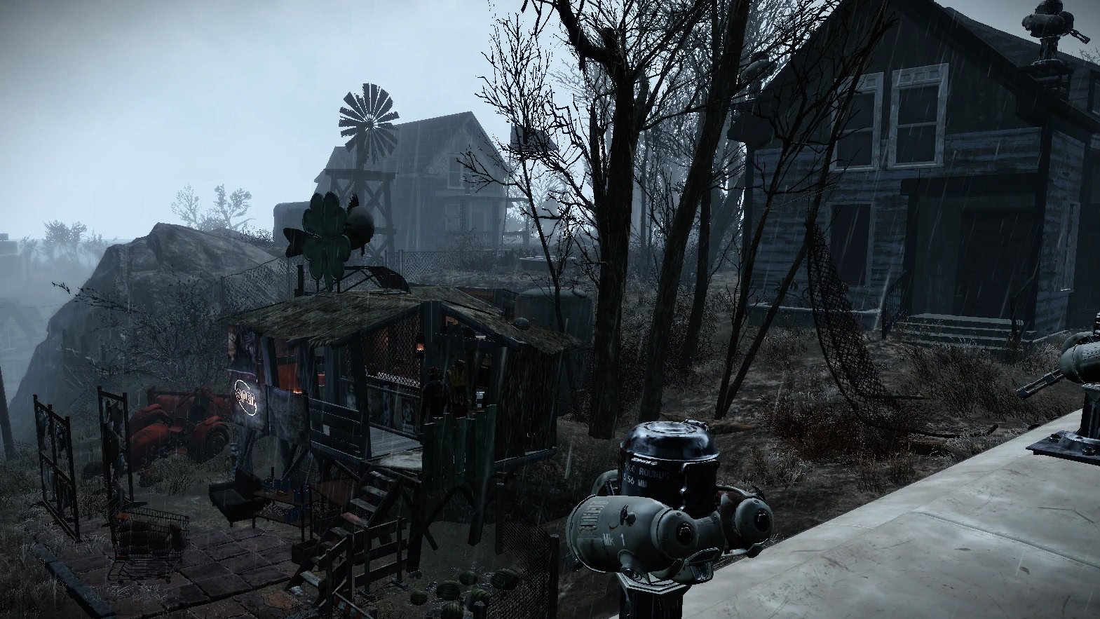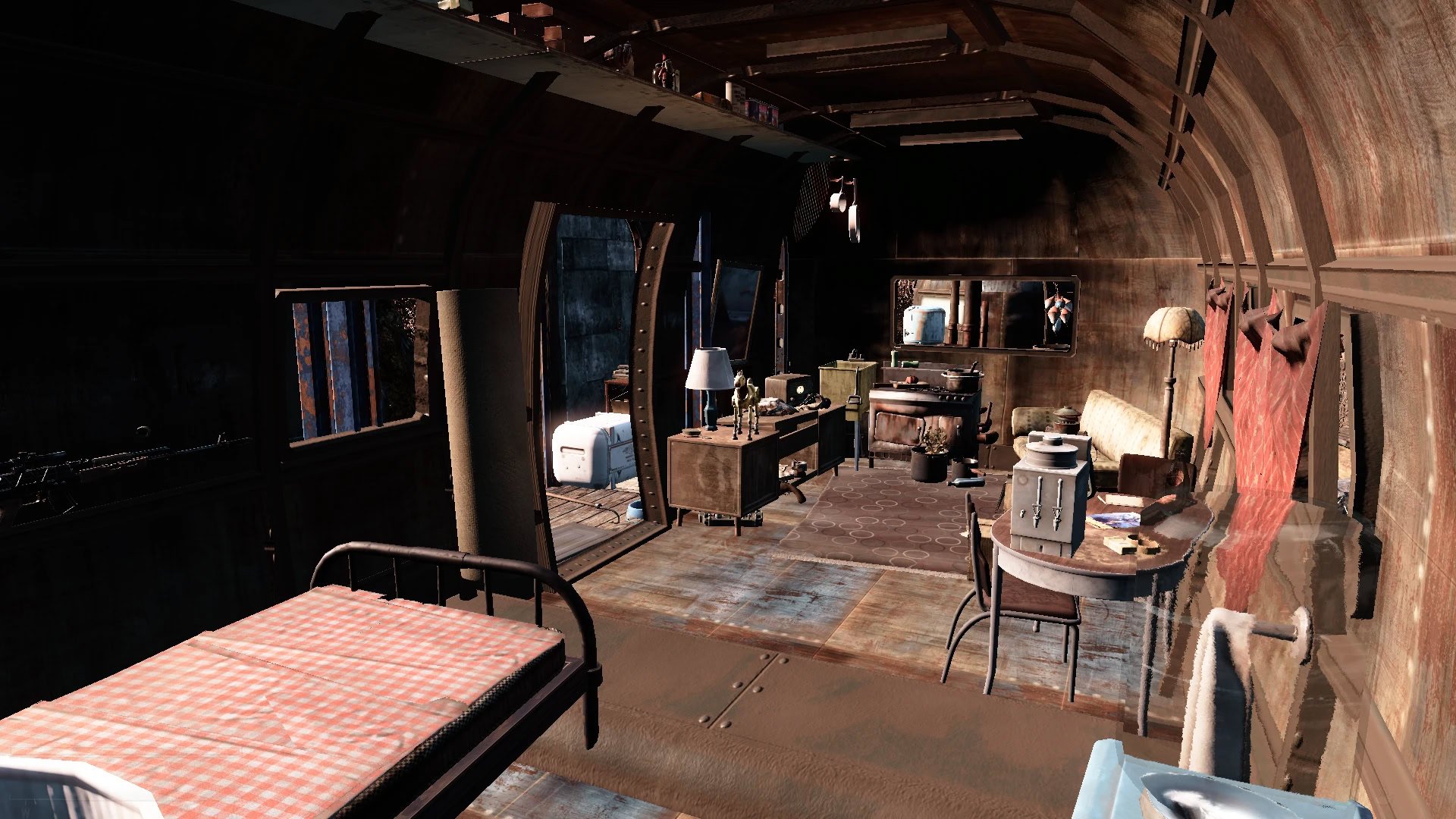 В целом, теперь это место выглядит вполне подходящим для проживания торговцев. Возможно, многие из тех, кто, как утверждается, здесь живёт, имеют сговор с местными бандитами и являются местными поставщиками товаров для рейдеров. Возможно, живых рейдеров здесь и нет. Кто знает, назовите себя рейдером и узнайте.Требования: Automatron, Contraptions Workshop, Far Harbor, Nuka World, Vault-Tec Workshop, Wasteland Workshop