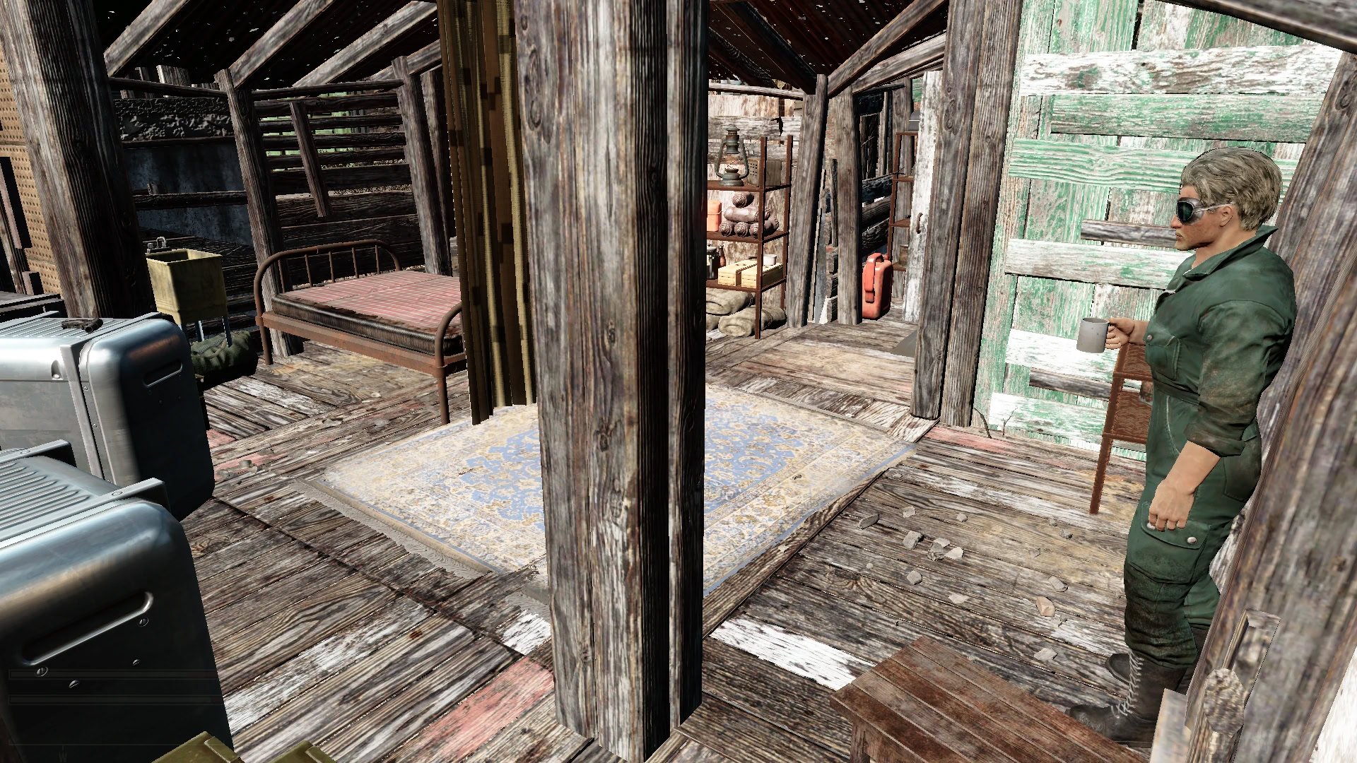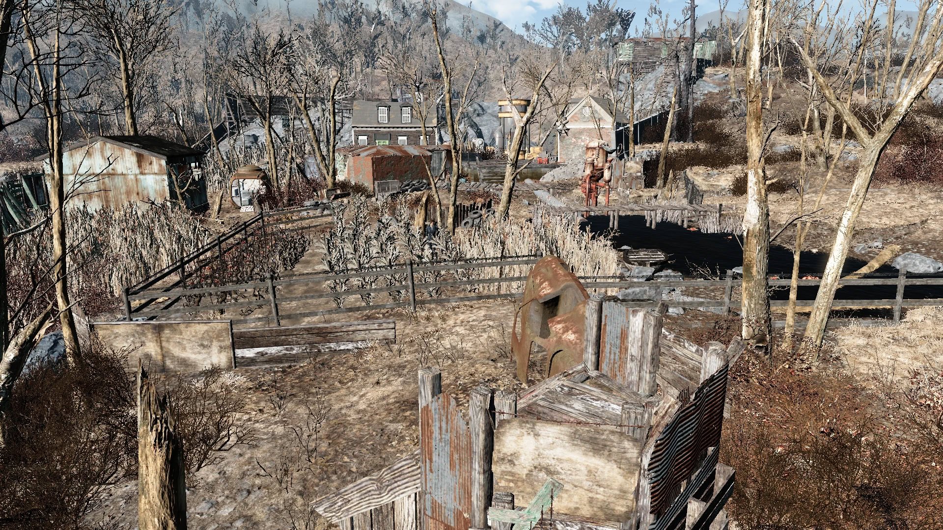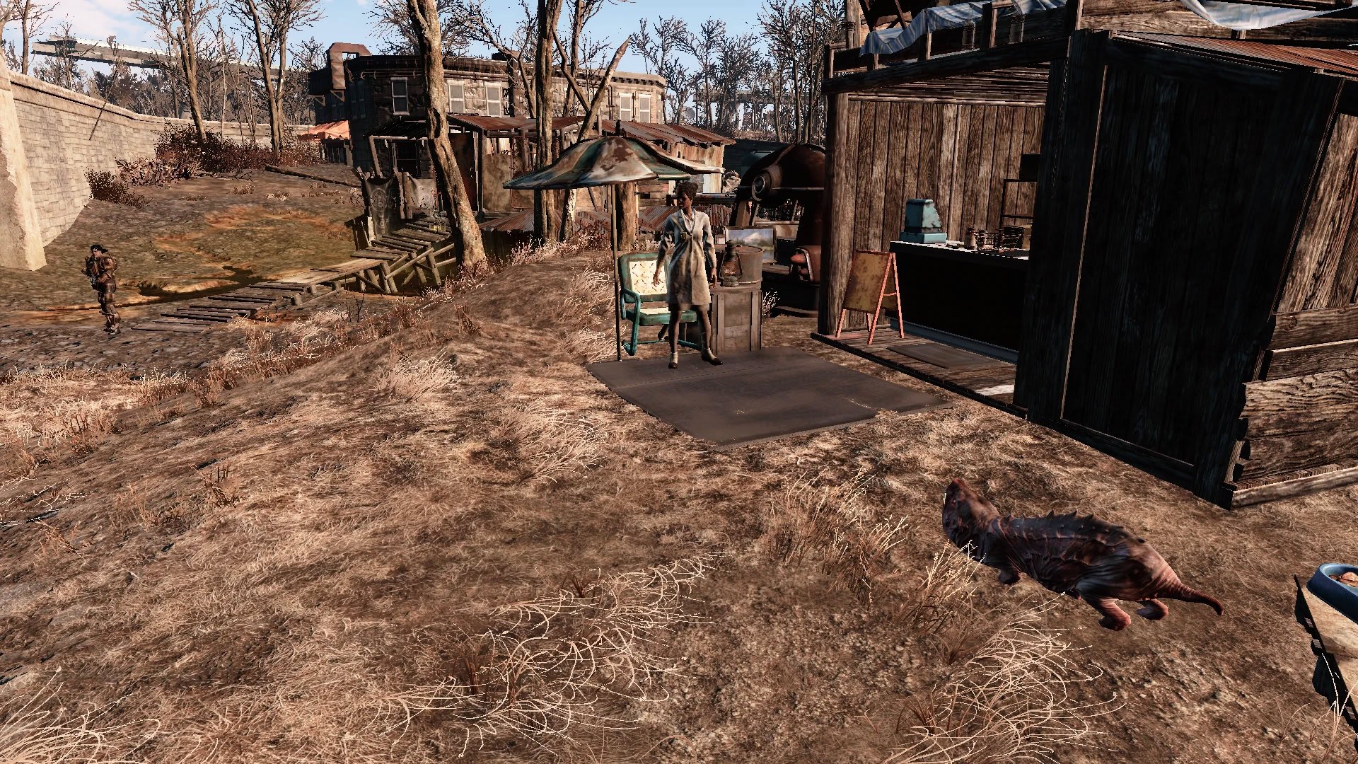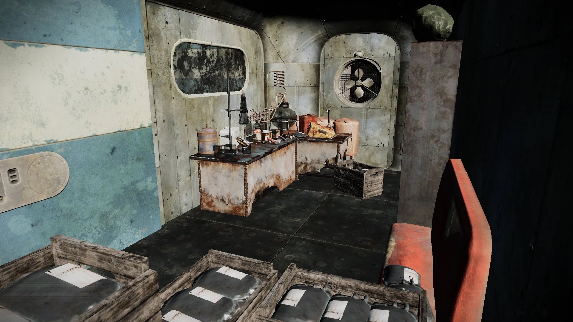 В целом, теперь это место выглядит вполне подходящим для проживания торговцев. Возможно, многие из тех, кто, как утверждается, здесь живёт, имеют сговор с местными бандитами и являются местными поставщиками товаров для рейдеров. Возможно, живых рейдеров здесь и нет. Кто знает, назовите себя рейдером и узнайте.Требования: Automatron, Contraptions Workshop, Far Harbor, Nuka World, Vault-Tec Workshop, Wasteland Workshop