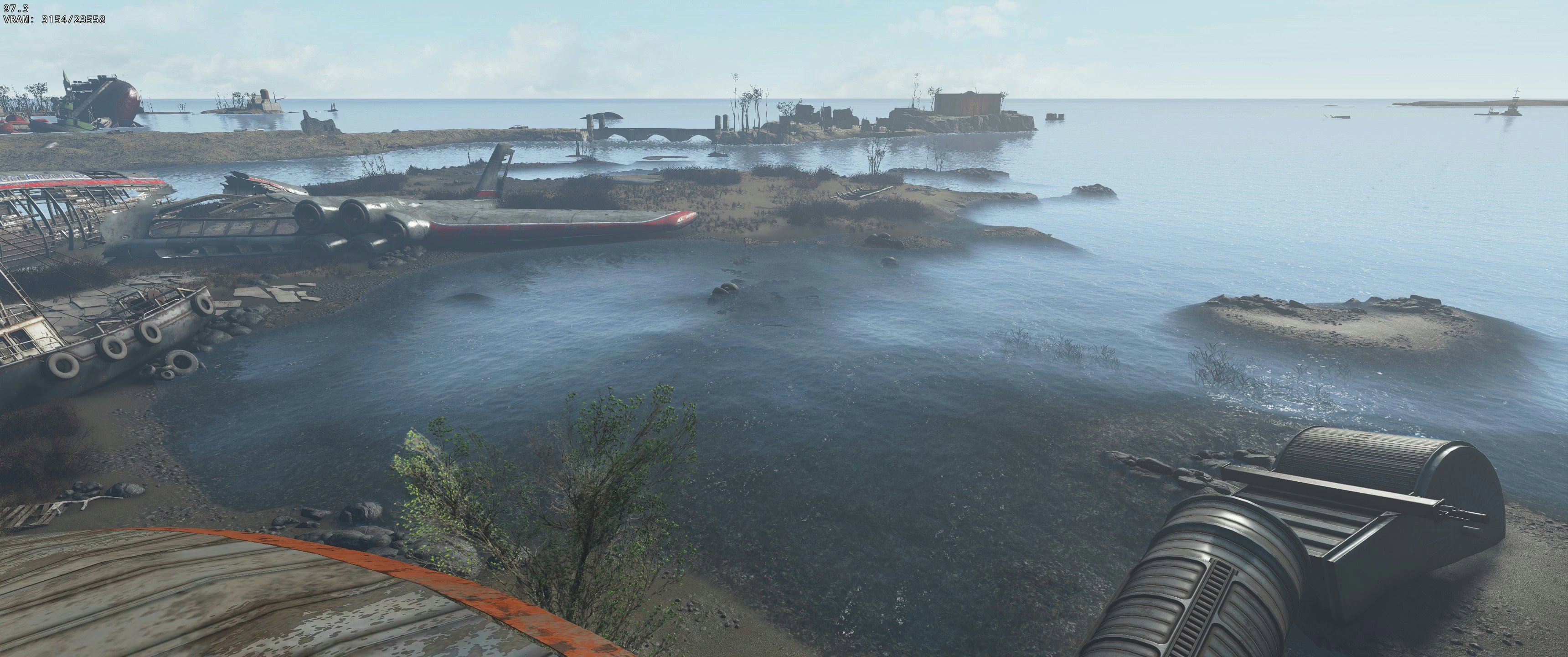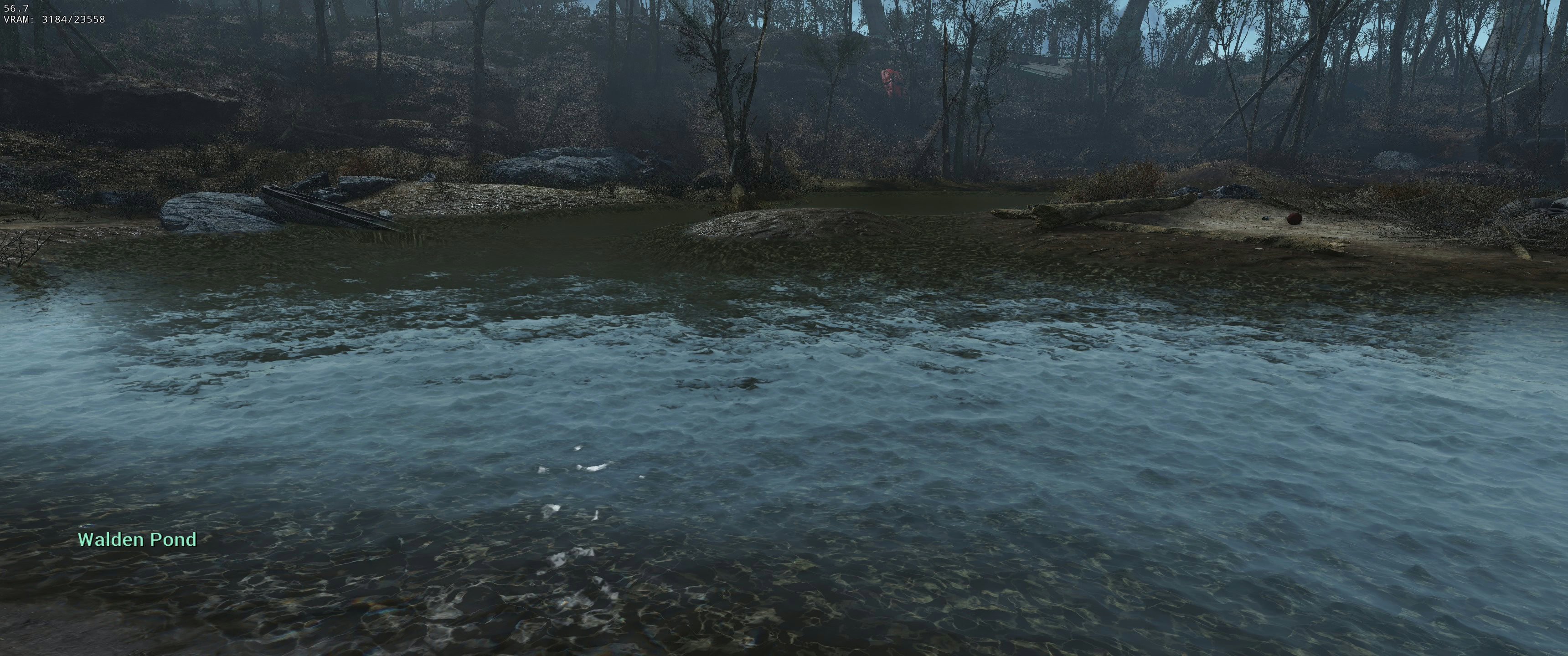Местами вода немного более прозрачна / отражает свет. Уровень детализации воды значительно улучшен, теперь он бесшовно соответствует типу воды по умолчанию. Водяной шов, обнаруженный во время испытаний возле внешней части Убежища 88, был устранен. ESL помечен как ESM.