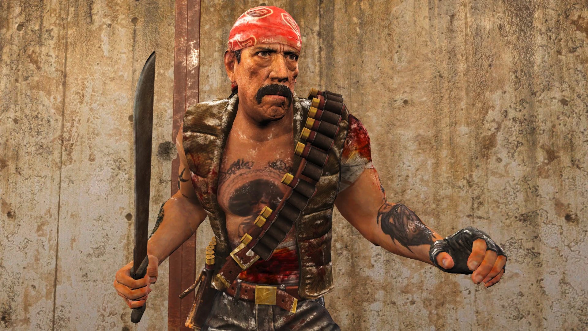 Пока не вышел"Мачете убивает вновь... В космосе!", вы можете устроить "Мачете в Fallout 4". Только для мужских песонажей. Включает в себя: - Полный комплект - Одежду - Маску - Бандану Создается в химлаборатории. Апгрейд - верстак для брони.Credits: Treyarch Activision Danny Trejo Axel-Noir Установка и удаление стандартные.