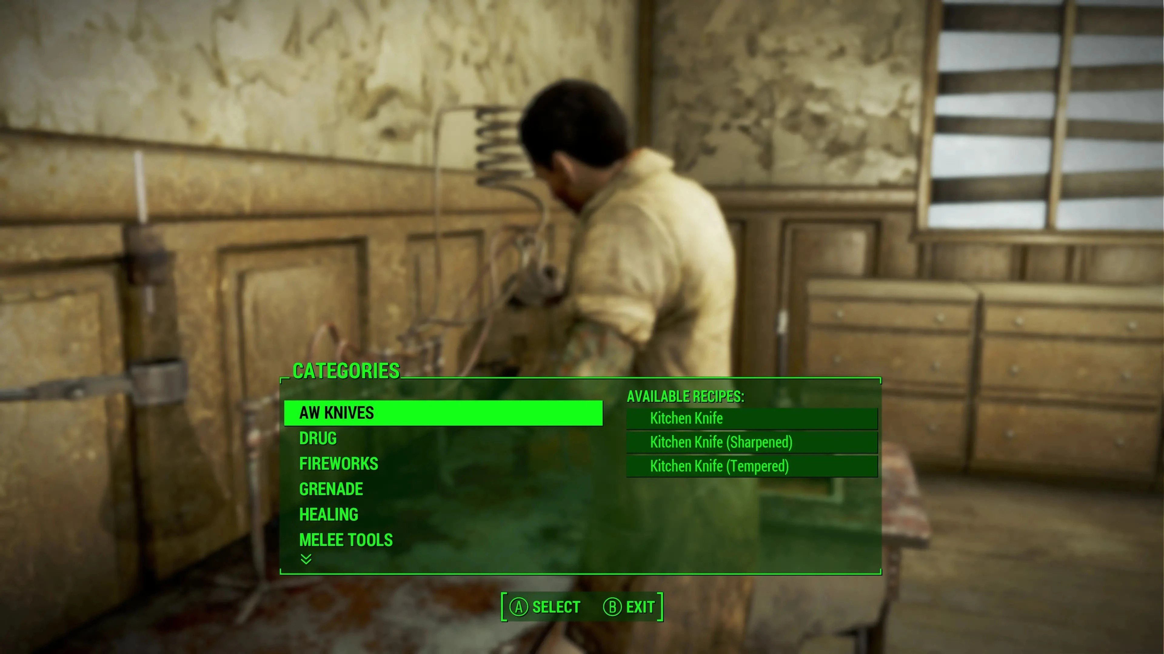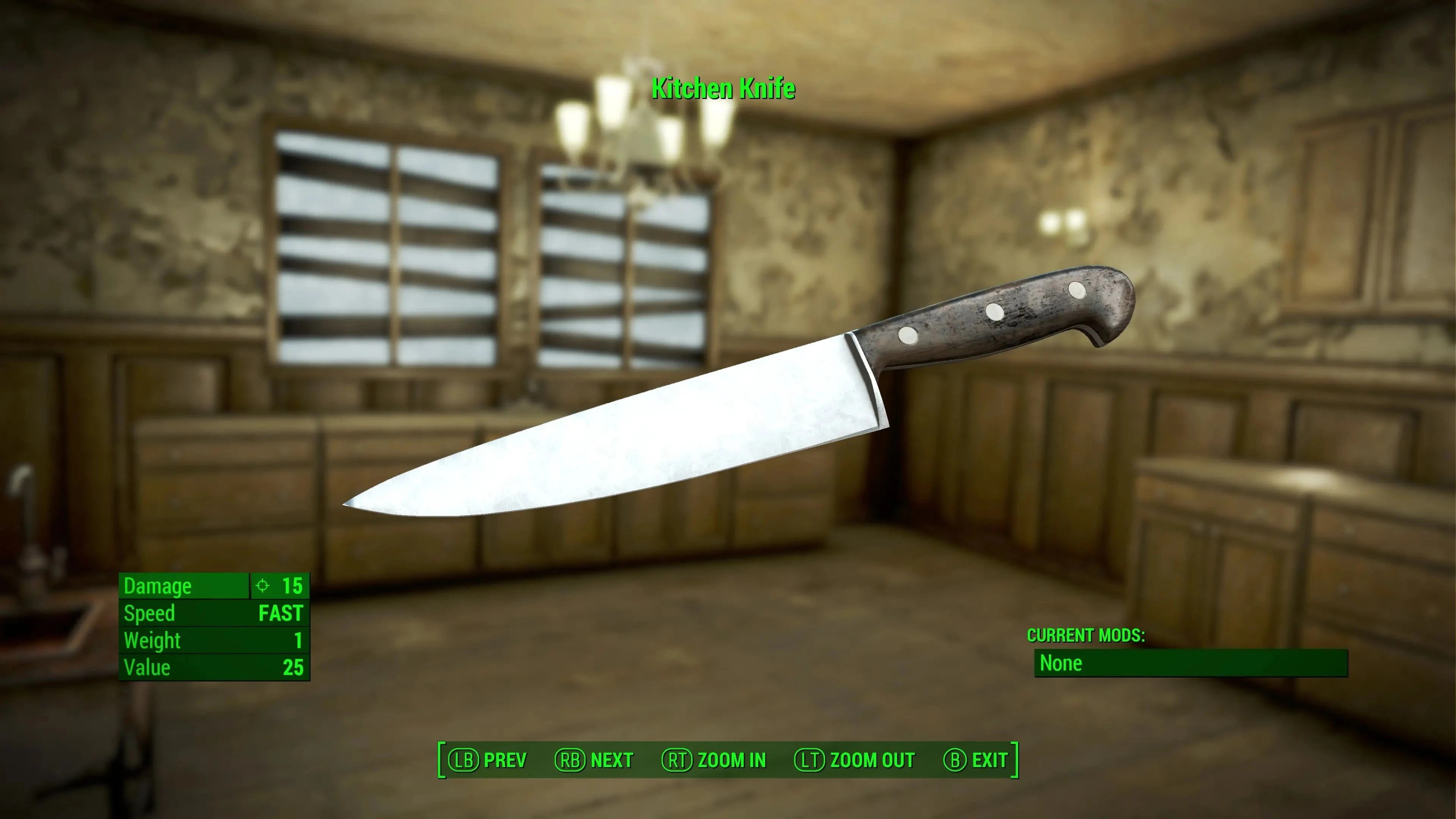 Добавляет изготовленный на заказ кухонный нож 1950-х годов для использования в качестве оружия ближнего боя. Как получить: можно изготовить в химлаборатории.