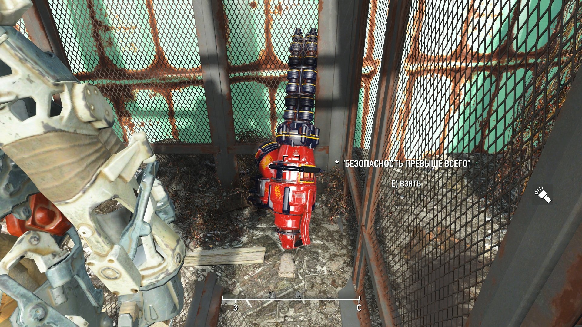 - "Безопасность превыше всего" находится за запертой дверью рядом с разбившимся вертолетом (на барже с военным грузом).