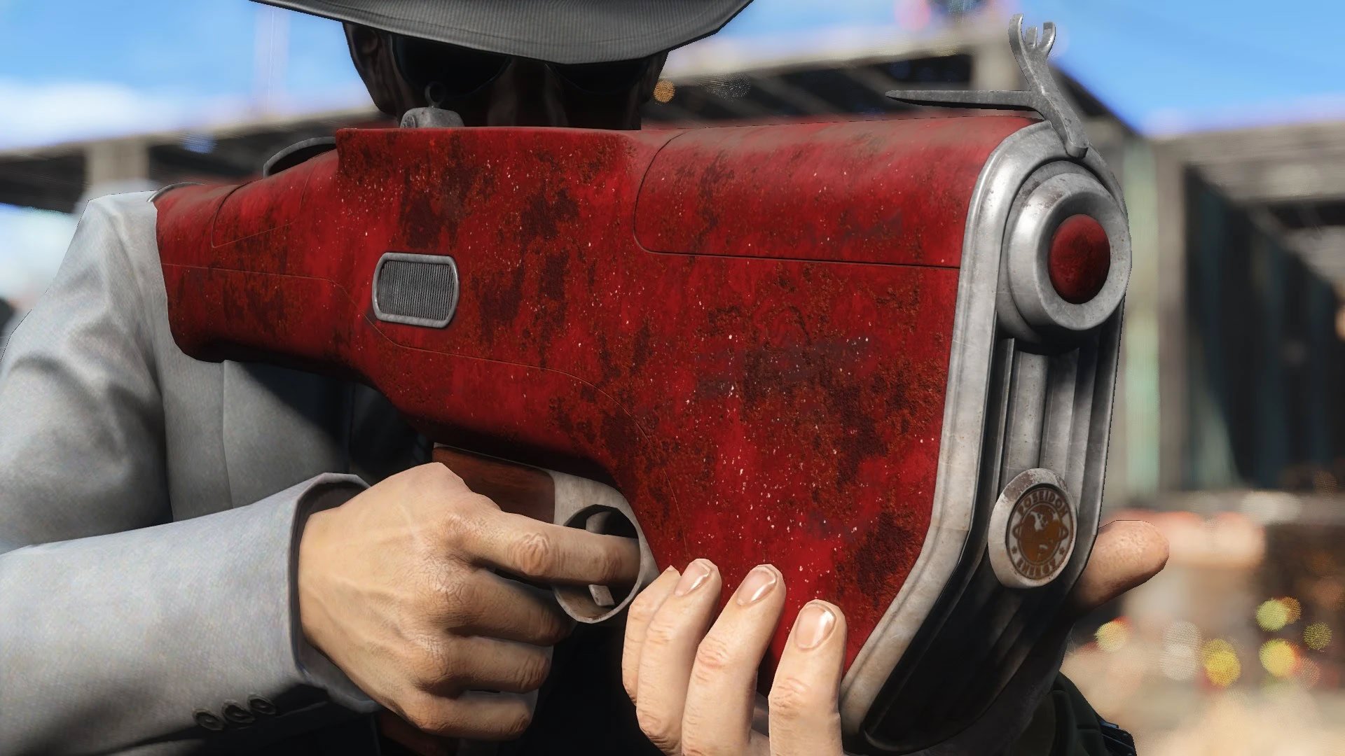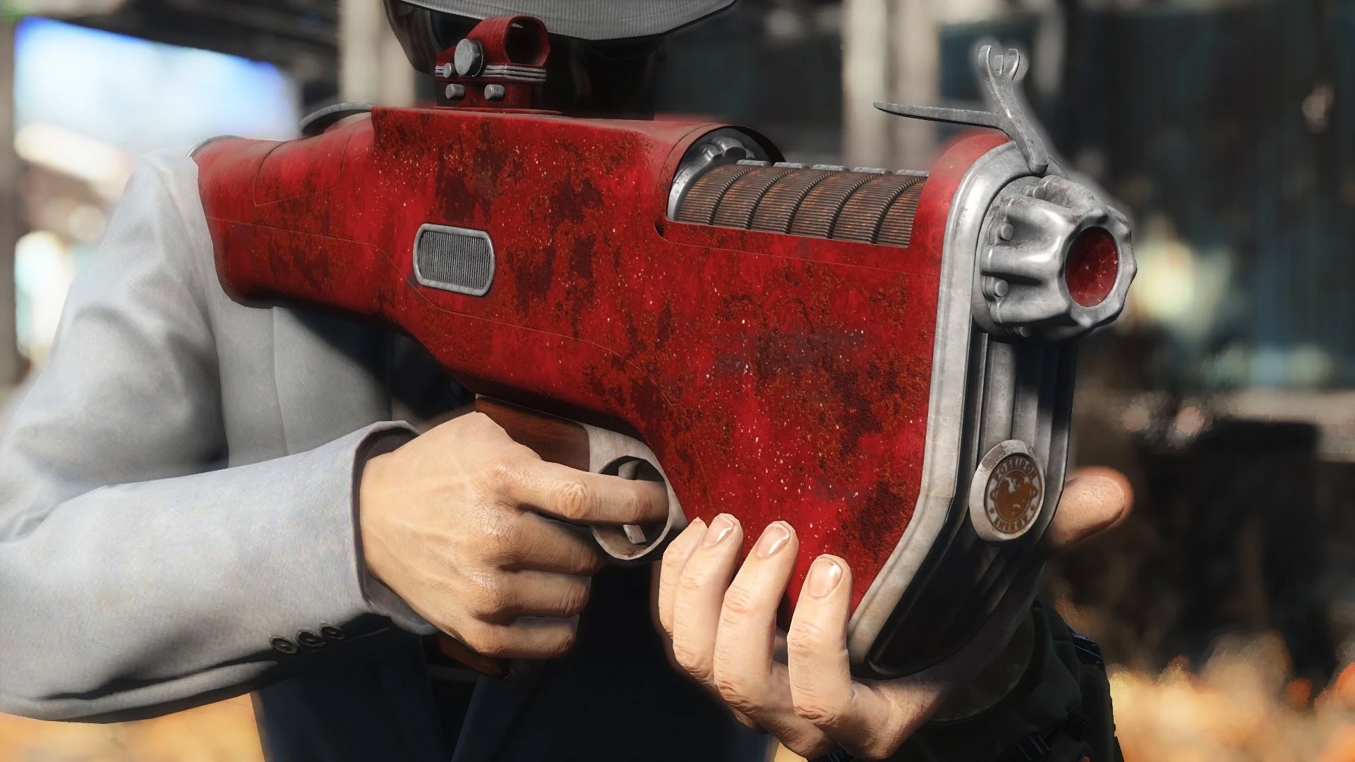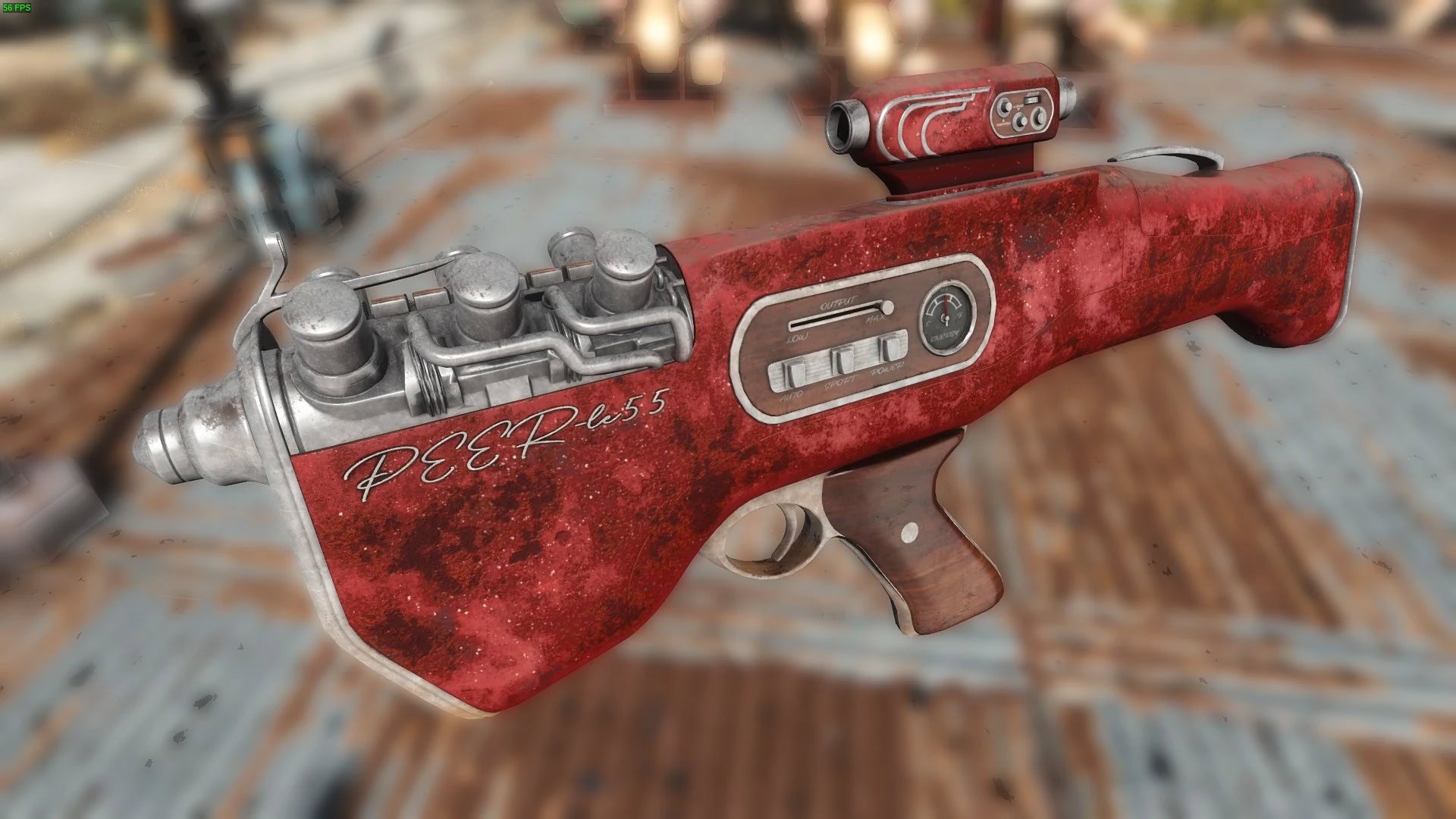 Лазерная винтовка в стиле автомобилей 60-х годов. Лазерная винтовка, созданная по мотивам автомобилей 60-х годов. Её можно найти на окраине Даймонд-Сити, смотрите изображения.Модификации, пользовательские анимации.