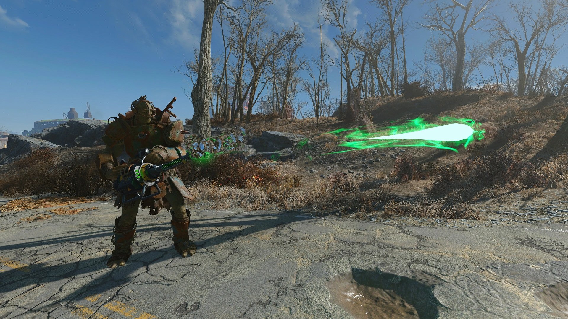 Плазмомёт был одним из моих любимых видов оружия в Fallout: New Vegas и Fallout 76 , и цель здесь - воссоздать это же ощущение в Fallout 4. Каждый вариант имеет свой собственный баланс и разработан таким образом, чтобы органично вписываться в игровой мир в качестве альтернативы стандартному плазменному карабину. Как тяжёлое оружие, он выигрывает от перка "Фанат больших пушек".