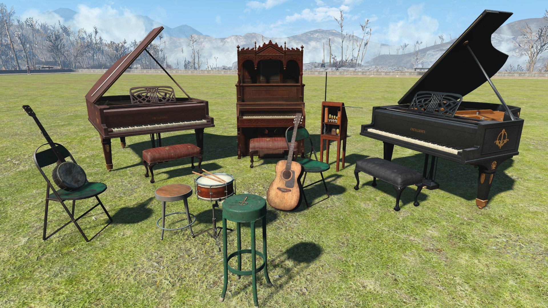 Пень для рубки дров*переводчику пришлось "допилить" мод, добавив "создаваемый объект" восьми музыкальным инструментам, забытым автором, и вернуть их в игру: