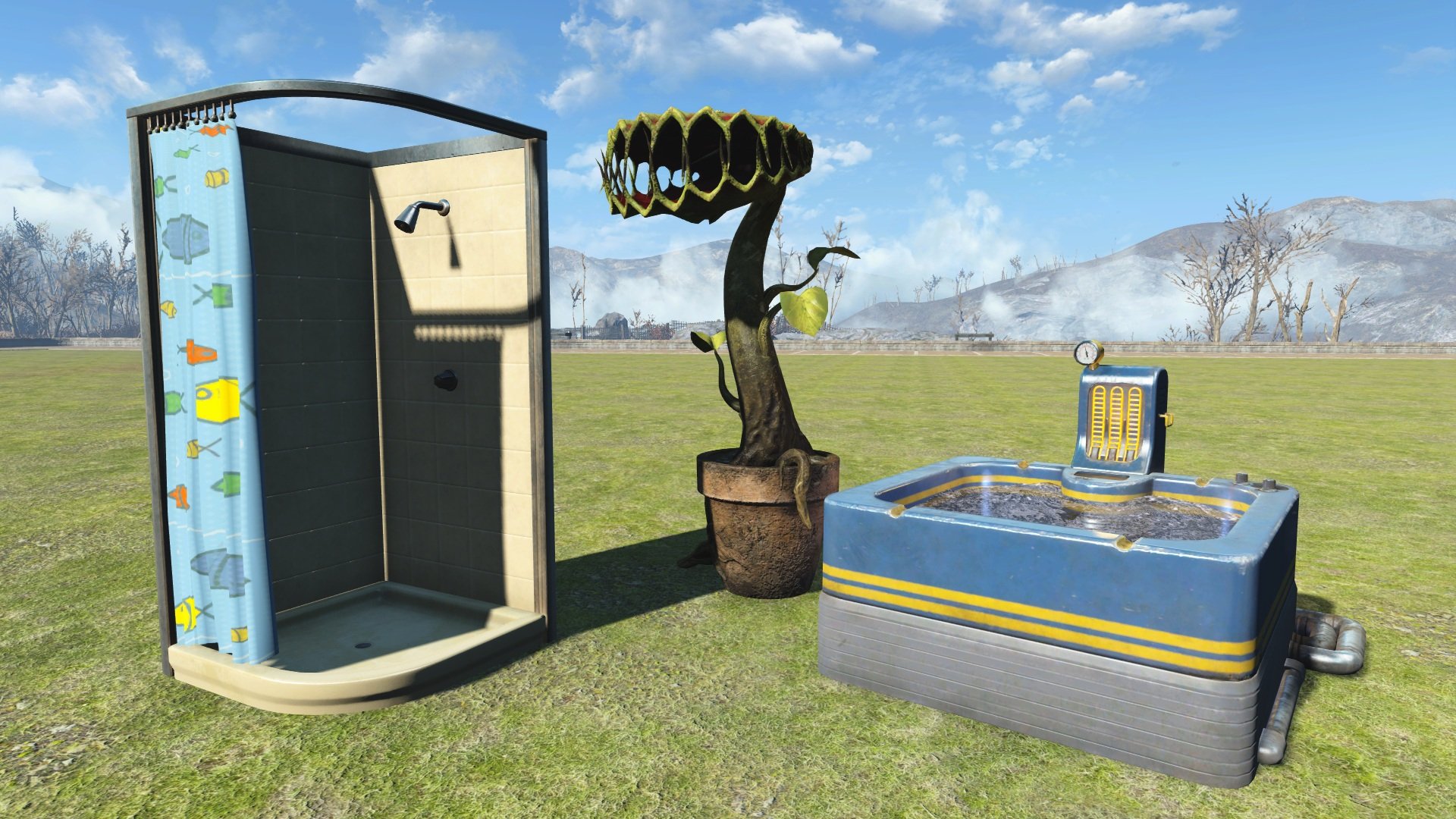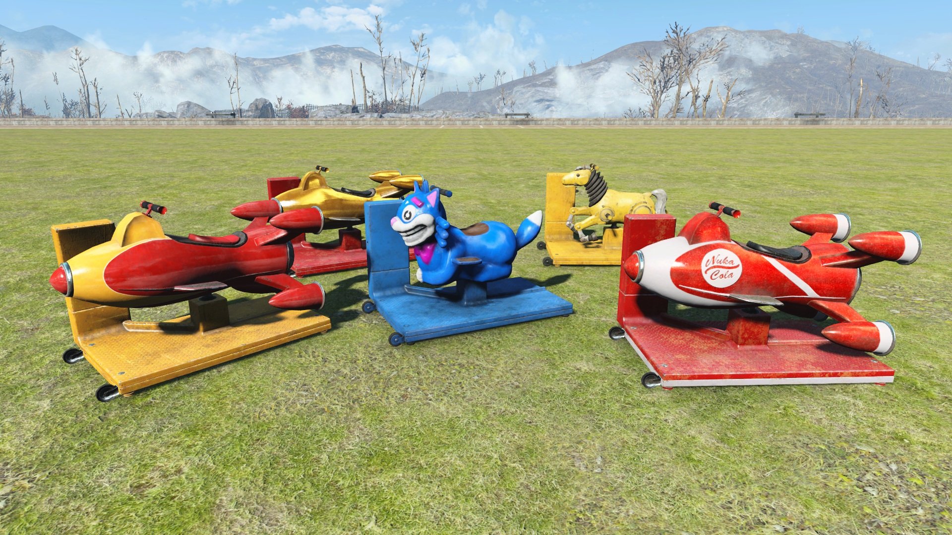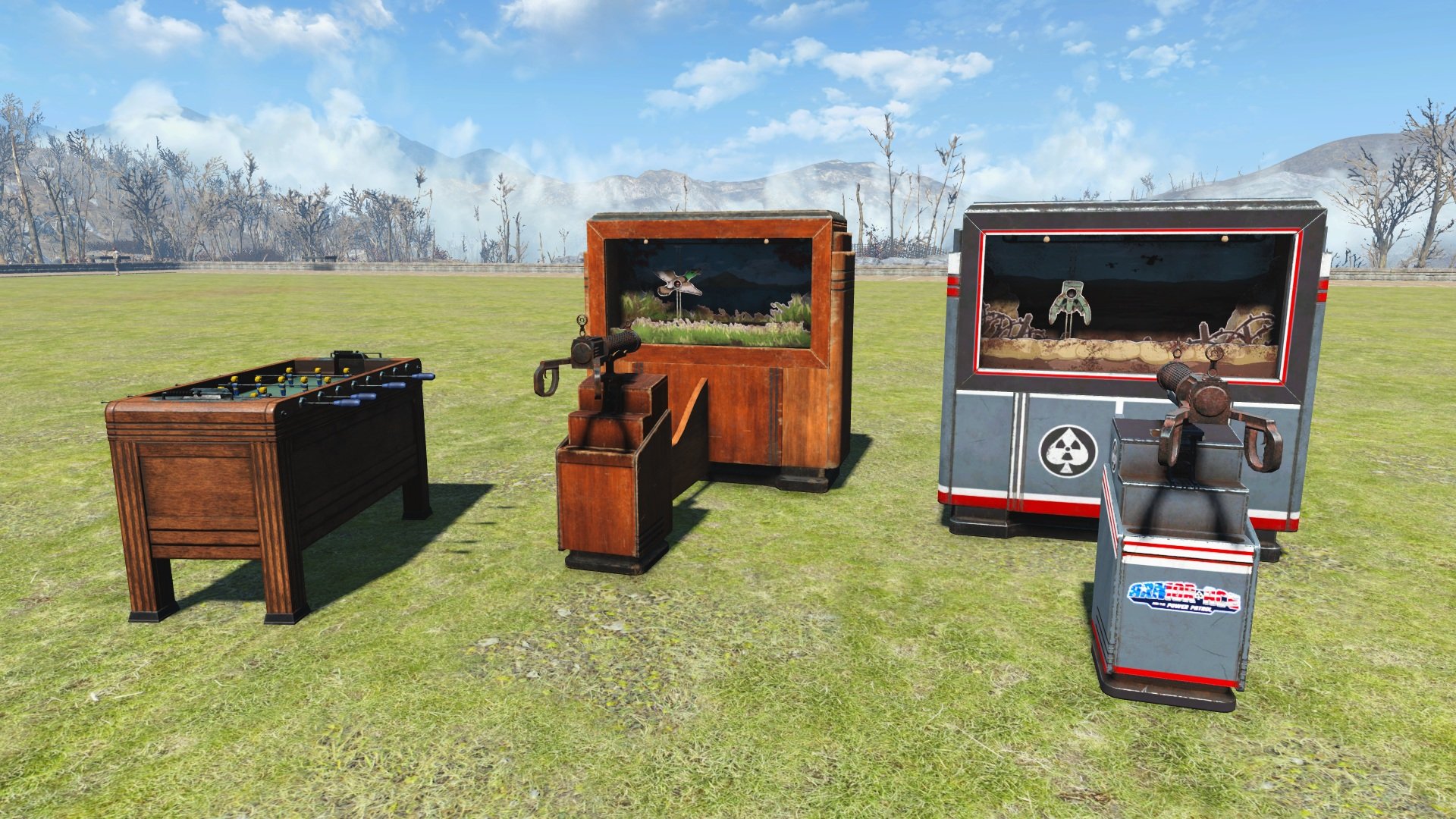 Создайте в вашем поселении парк аттракционов из Fallout 76! Мод добавляет множество интерактивных анимированных аттракционов, а также кровати, верстаки, торговый автомат и прочее.