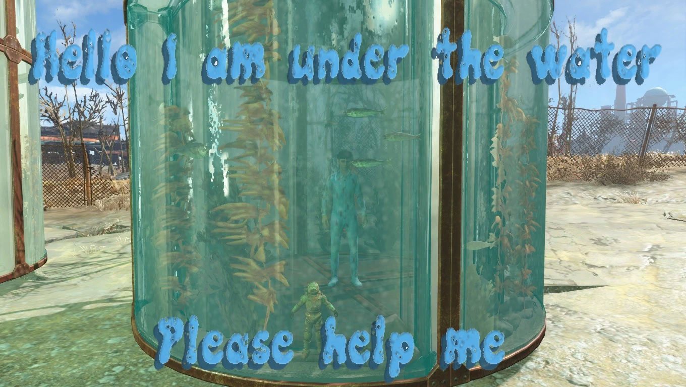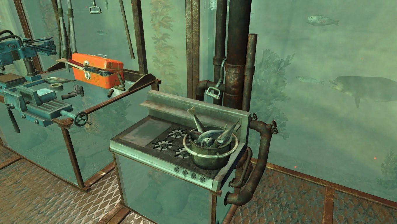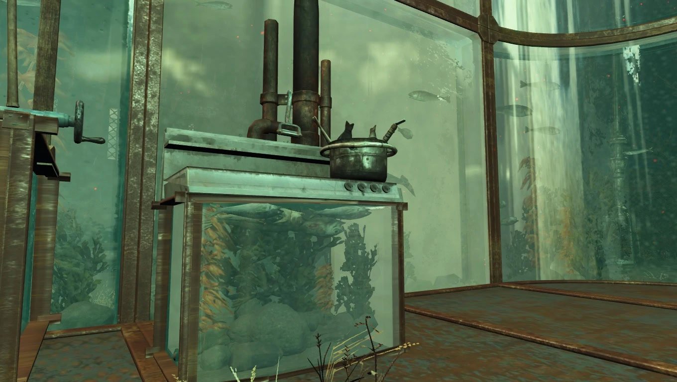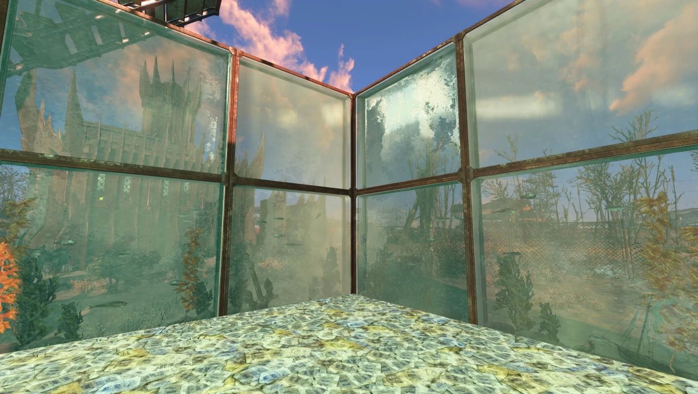 Добавляет набор стен и верстаков в аквариумной тематике. Устали от жизни без тонн стекла и воды вокруг? Теперь вы можете строить здания из воды. И стекла, и стали, и рыб, которые не двигаются. Но вода вроде бы движется. - Аквариумные стены, находятся во вкладке «Бетон», они полупрозрачные и отлично подходят в качестве окон. - Верстаки и кухонные плиты в стиле аквариума.Требования: Far Harbor, Wasteland Workshop Установка и удаление стандартные.