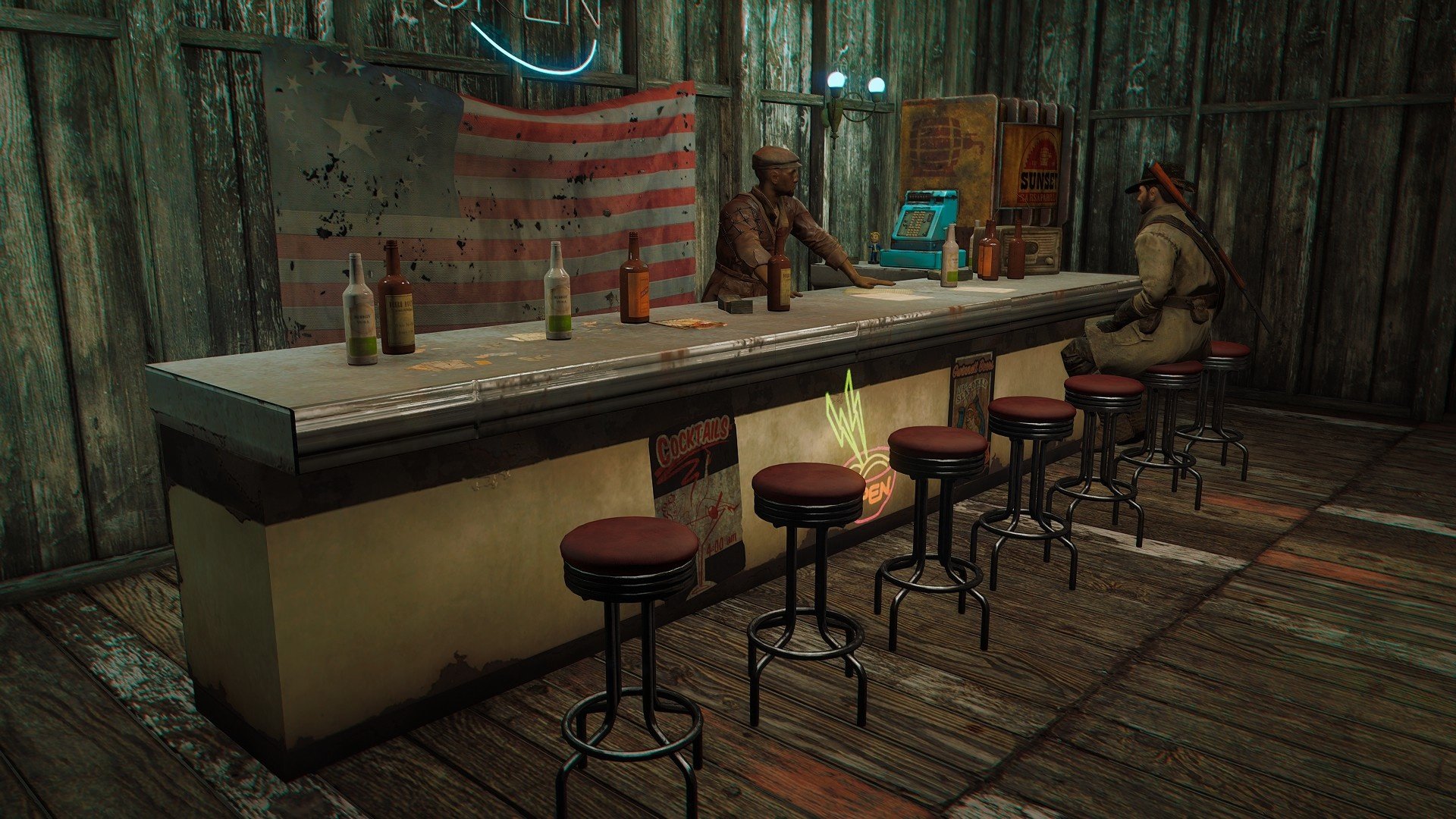 Этот мод включает в себя четыре новых варианта дизайна/планировки баров, а также подробную (плюс) версию для каждого из них. Вашим барменам больше не придётся вытаскивать виски из ниоткуда, чтобы вас обслужить. Эти бары полностью укомплектованы! С Better Bars ваши бармены теперь будут работать круглосуточно, потому что они могут спать, когда умрут! Но серьёзно, когда мне нужен виски в 3 часа ночи, а там никого нет, чтобы меня обслужить, это просто бесит.