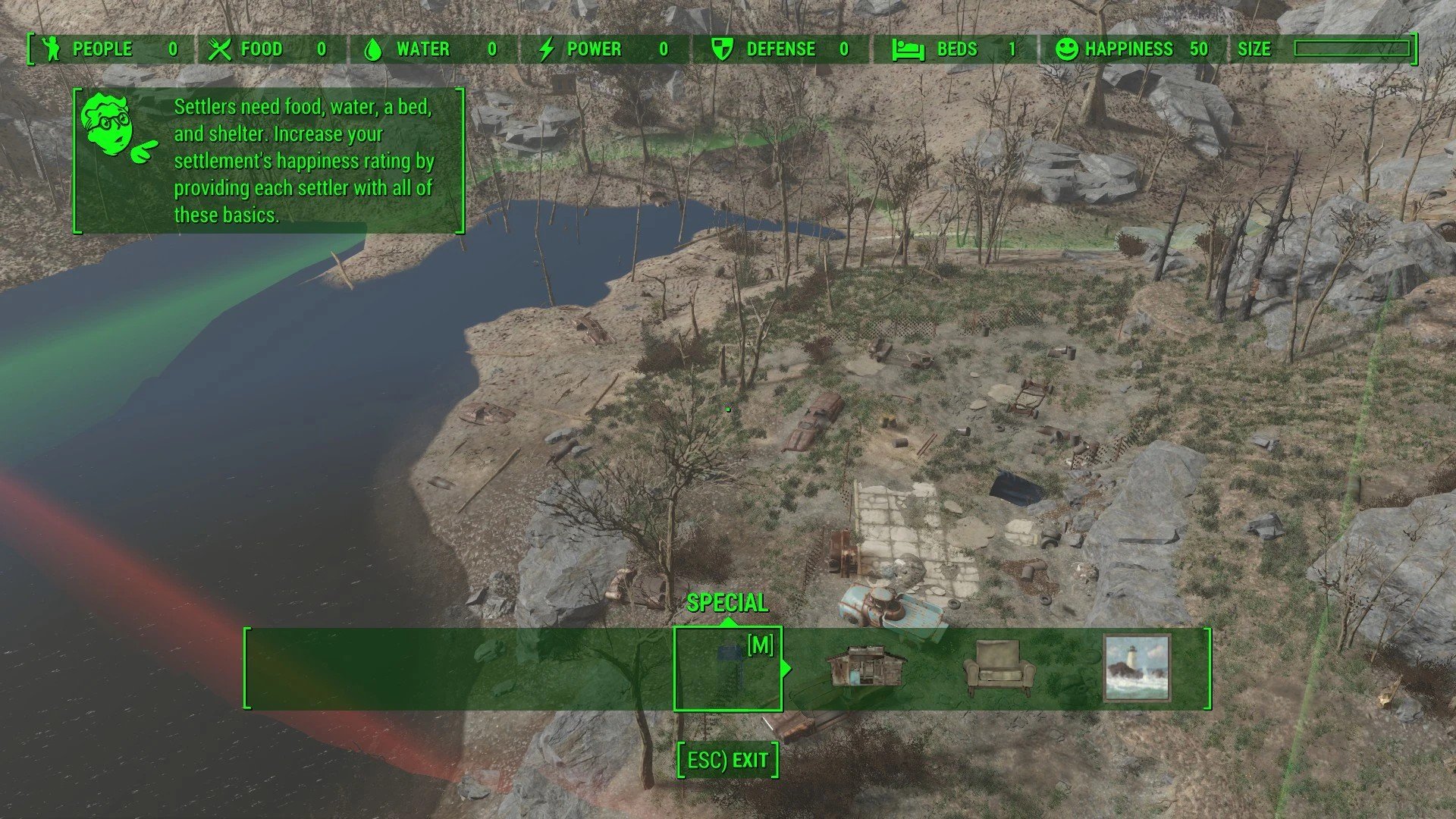 Новое полностью функциональное поселение игрока с уборкой и регенерированными Previs и прекомбинациями, расположенное немного к юго-западу от хранилища лодок «Викед Шиппинг» по дороге. Причудливое маленькое место с водоемом пресной воды, готовое к заселению.
