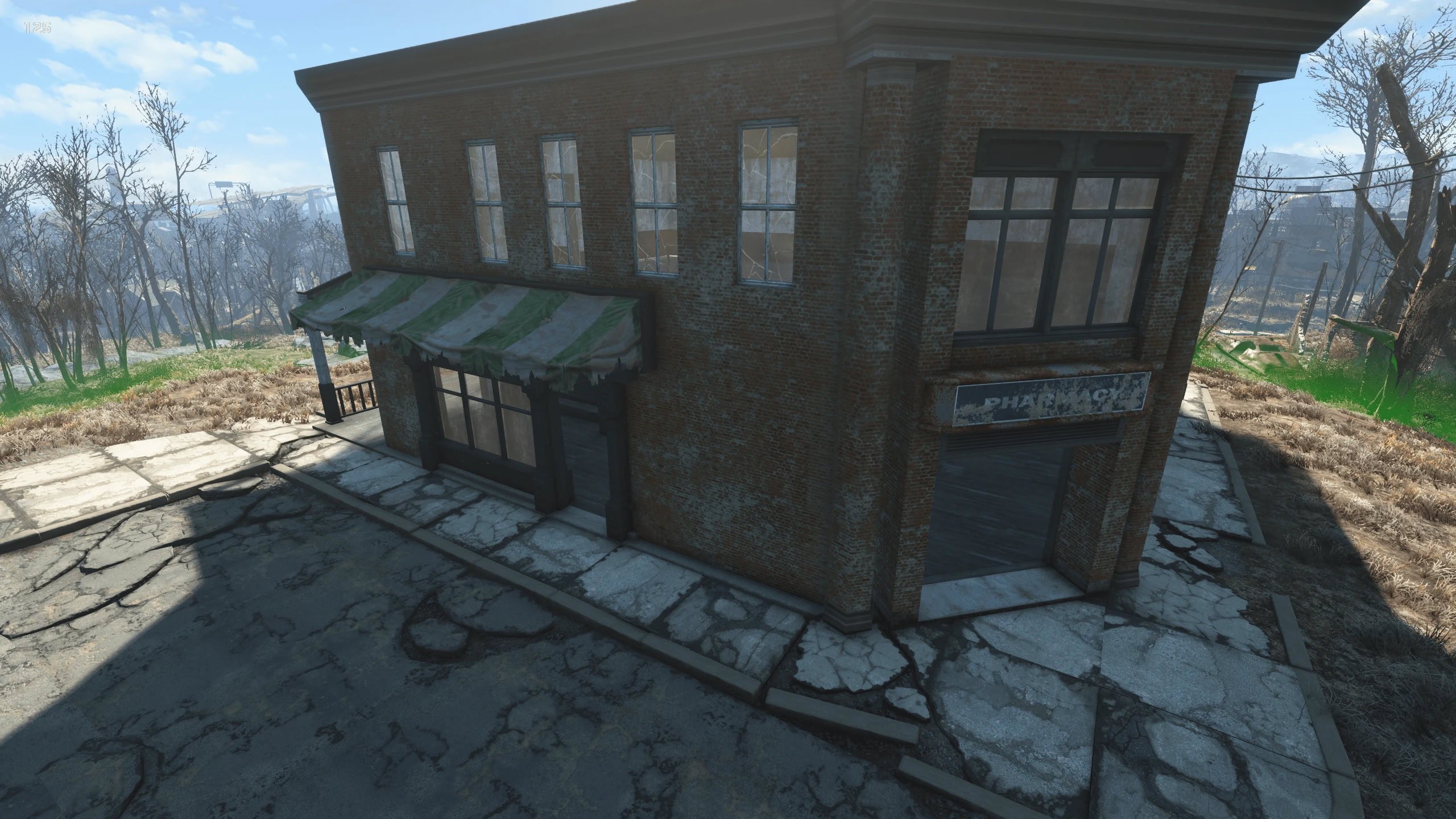 Previs был перегенерирован для региона, и все поселение помещается в один его кластер. Он также легко поддается сносу, что позволяет вам строить большую часть пространства. Область строительства включает в себя саму аптеку, парковку перед дверью, а также часть дороги. Я также включил здание за аптекой как часть области строительства.Совместимость: Я не предвижу, что у этого будет много проблем с совместимостью просто из-за того, что это место находится в стороне. Рекомендую разместить этот мод ниже в порядке загрузки, чтобы предотвратить перезапись данных о местоположении другими модами.Установка и удаление: стандартные.