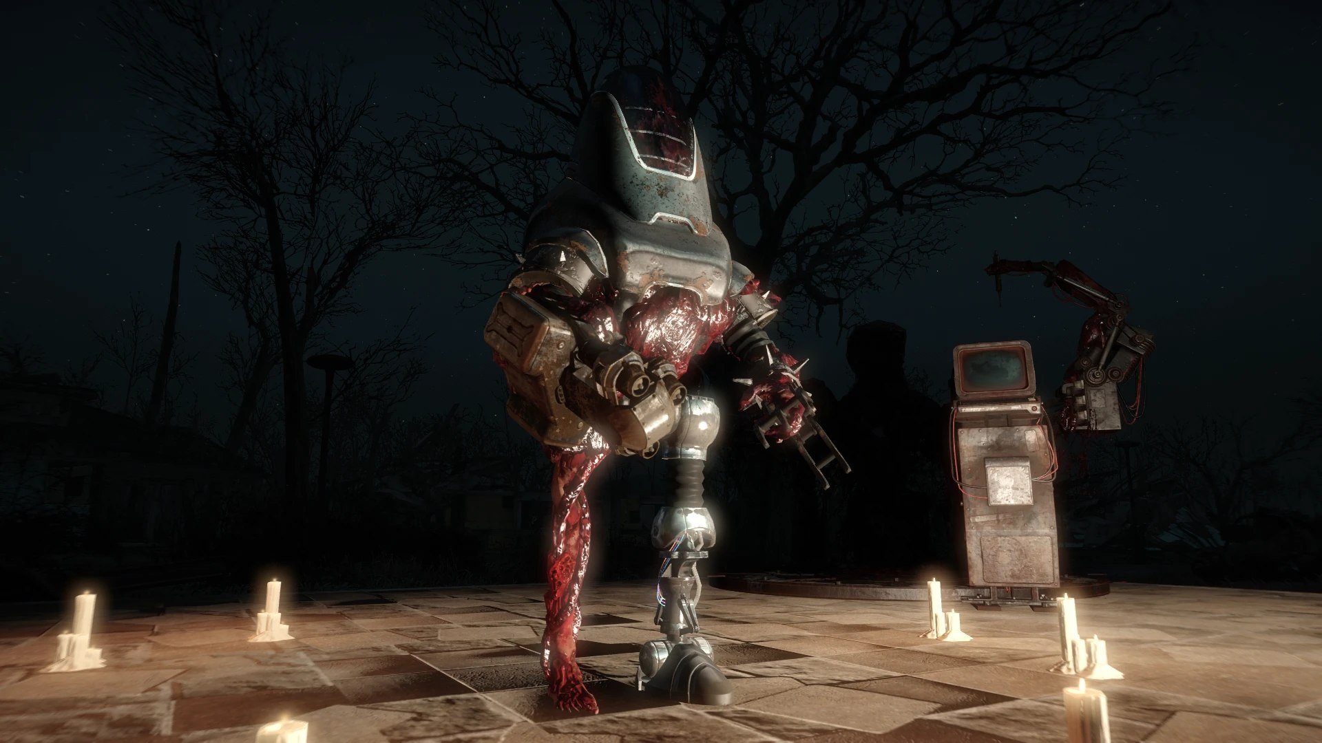 ..."В вашем сознании проносятся образы. Окровавленные сухожилия, натянутые на механических конечностях. Грибковые щупальца ползут по электронным схемам, как расширяющиеся вены. Что-то злобно смотрит на вас, плавая в гнилостной жидкости. Темные знания выжигают в вашем сознании..." Создавайте ужасающих монстров из этой коллекции деталей роботов, используя новые специальные верстаки. После загрузки мода начнётся квест. Прочитайте странное письмо в инвентаре, чтобы отправиться в (короткое) путешествие и разблокировать новые опции роботов и собрать новый комплект брони.Новые опции включают в себя: - 2 новых опции верстака робота («Оккультный» и «Повреждённый») - доступны в меню поселения после завершения квеста. - Новые опции повреждённого протектрона - Новые опции грибкового штурмотрона. - Новый торс боевого бота-гомункула - Новый торс Мистера Помощника «Призрак». Требования: Automatron, Far Harbor, Nuka World Установка и удаление стандартные.