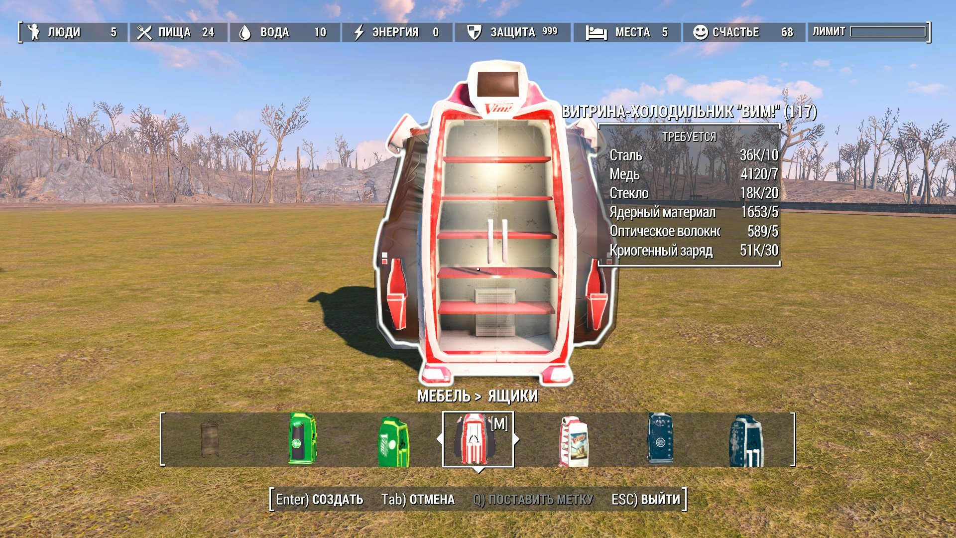 Холодильники можно найти в меню мастерской в разделе "МЕБЕЛЬ > ЯЩИКИ"