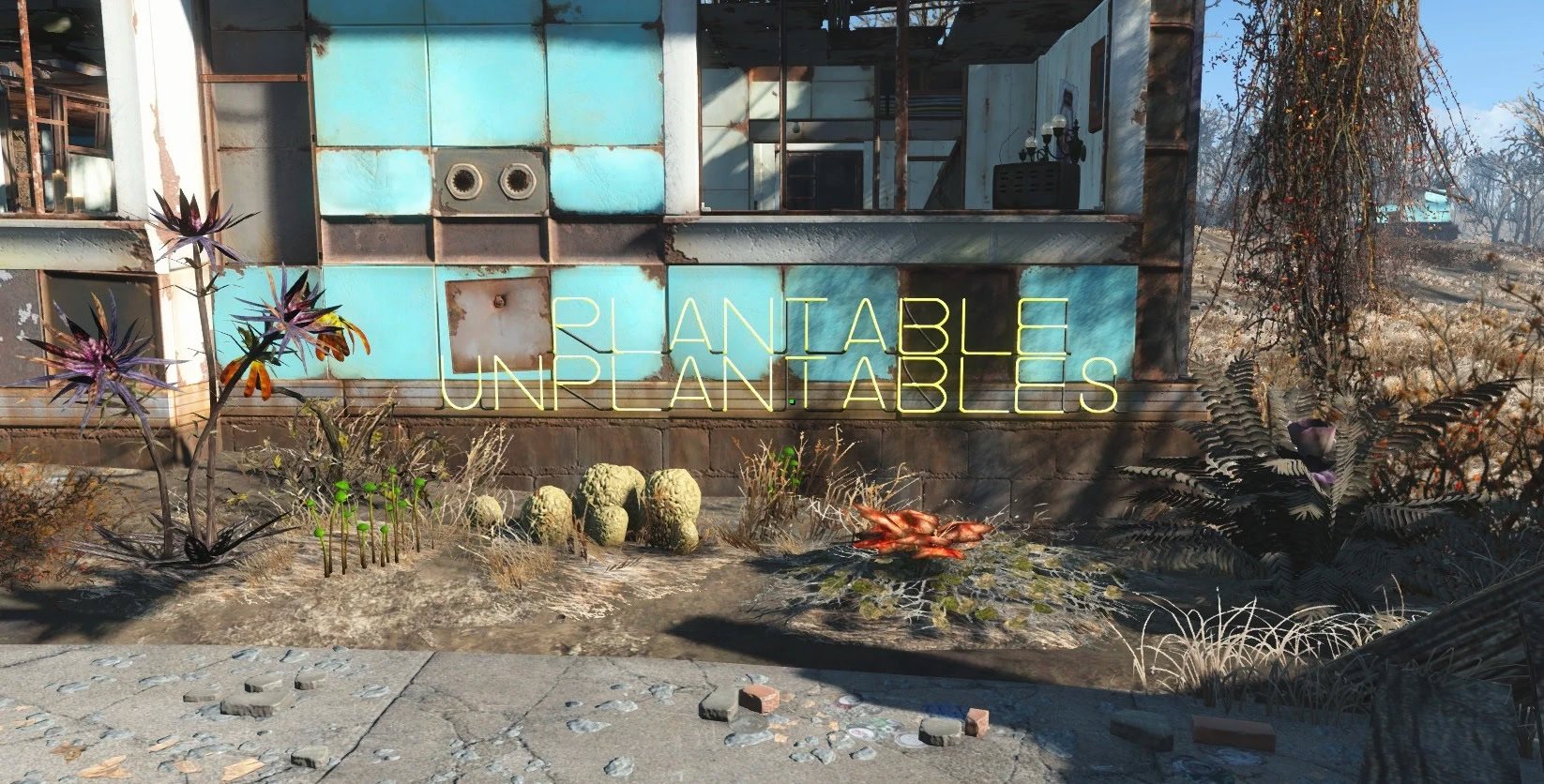 Этот мод позволит высаживать в ваших поселениях множество диких растений, произрастающих по всему Содружеству. Мод позволяет высаживать в ваших поселениях почти все собираемые растения, встречающиеся по всему Содружеству. От мозгогриба до чертополоха, в этом моде есть (почти) все собираемые растения из базовой игры, а также скоро выйдут дополнения.