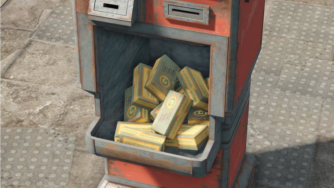 Мод добавляет простой торговый автомат с боеприпасами в раздел «Магазины» > «Оружие» в меню поселения.При активации торгового автомата боеприпасы стоимостью 500 крышек для вашего текущего оружия мгновенно выпадают в лоток ниже.