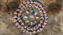 Хотя шоколад в Содружестве недоступен уже более 200 лет, на Пасху по-прежнему подают крашеные яйца (как съедобные, так и декоративные) и свежесрезанные цветы. Это творение содержит:
