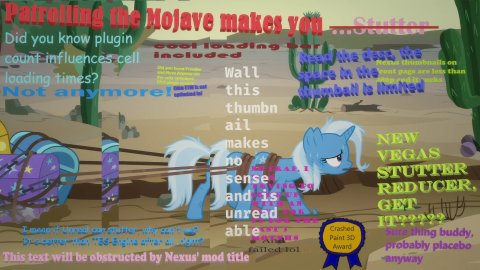 Делает Нью-Вегас и другие места в Мохаве более урбанизированными, добавляя различные объекты и здания. Затронутые модом локации показаны на нижнем скриншоте.Требования: Lonesome Road Установка и удаление стандартные.