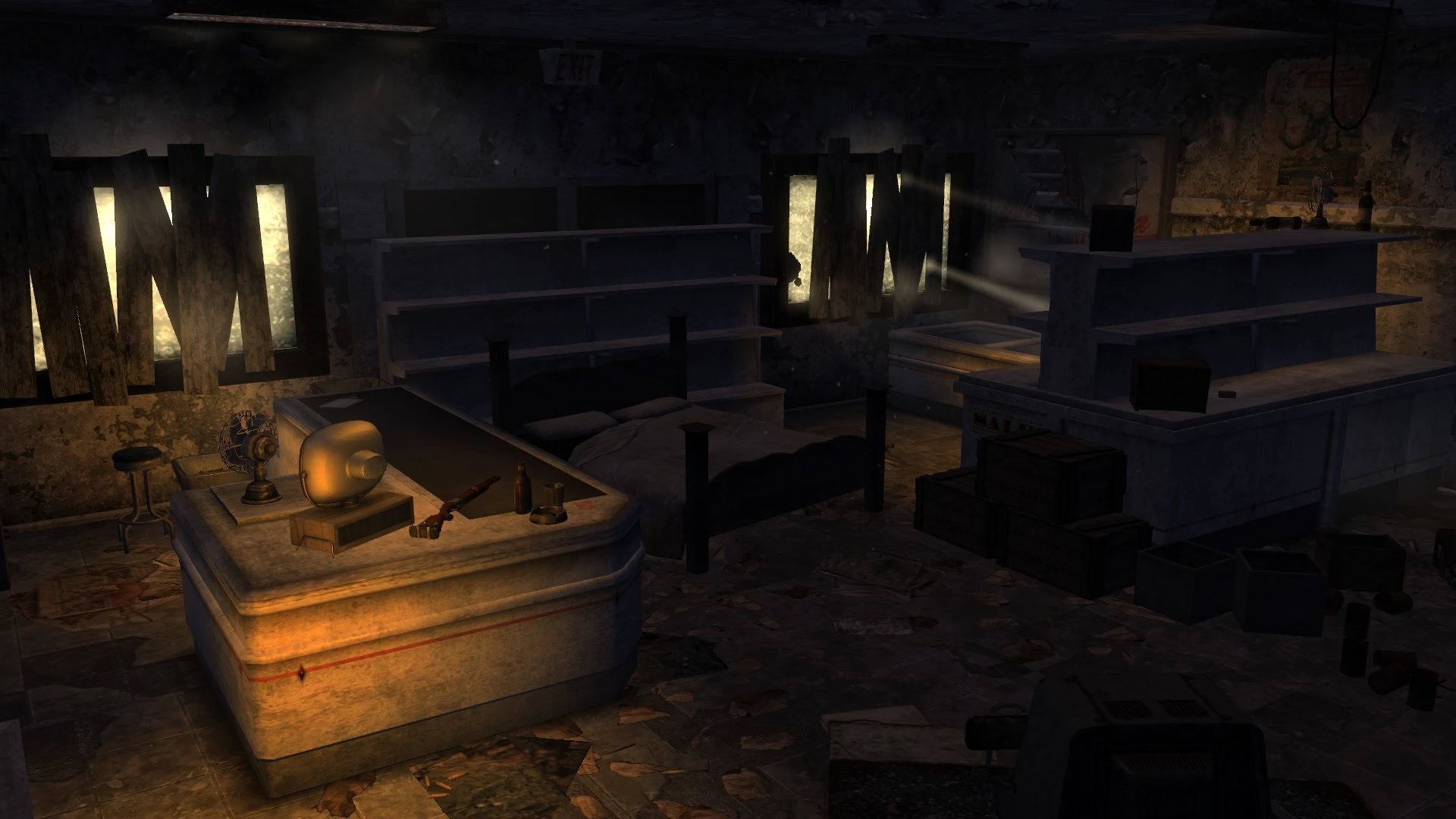 Добавляет классическое здание в стиле Fallout возле площади Норт-Вегас, которое может стать домом Курьера. - LOD - Полууникальная винтовка. - Различные контейнеры, шкафчики и станции для крафта. - Создано с учетом хардкорного режима В целом должно быть совместимо с любой крупной переработкой пейзажей. Требования: Dead Money, Honest Hearts, Lonesome Road, Old World Blues Установка и удаление стандартные.