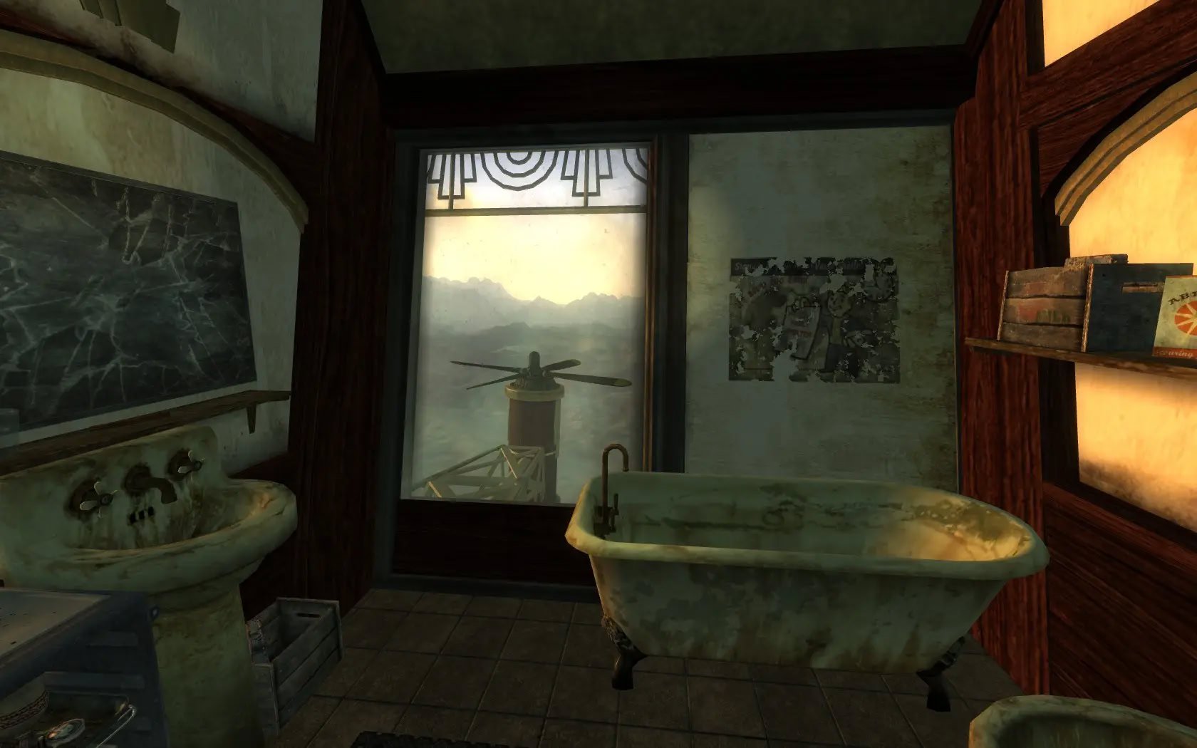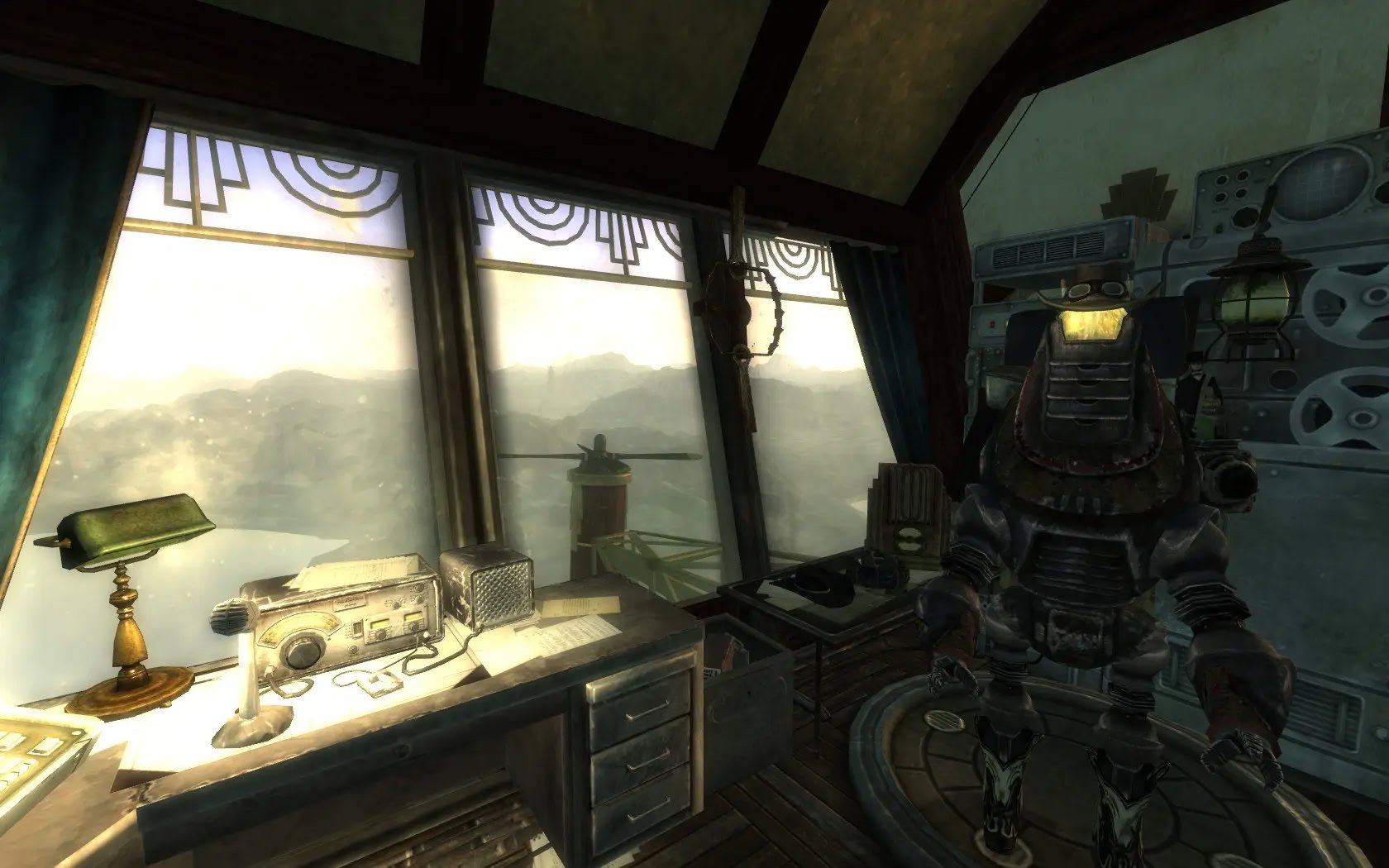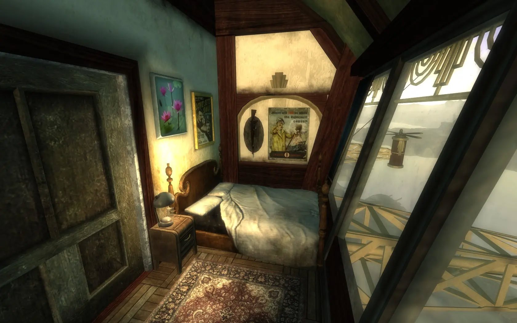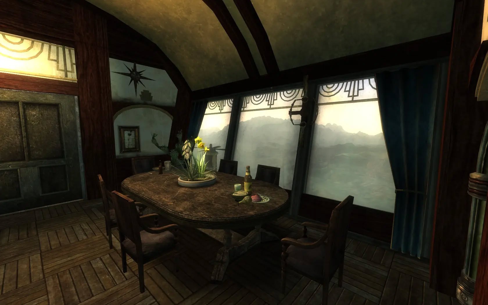 Добавляет дом для игрока на дирижабле с видом на озеро Мид и плотину Гувера в стиле ар-деко.Цеппелин "Розенбург" - это дом игрока в стиле ар-декоFallout. Помимо главной спальни есть две гостевые спальни поменьше. Комната робототехники является домашней базой для вашего компаньона, а скромный офис оснащен дисплеем в виде снежного шара.