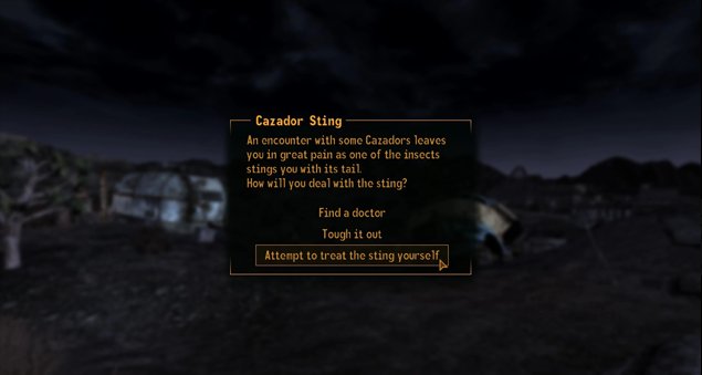 Как и предыдущий мод этого автора, этот ставит своей целью сделать игровой процесс более иммерсивным и интересным - на этот раз не сон, а быстрые путешествия. Теперь во время них будут происходить случайные текстовые события, которые варьируются от обычных комментариев персонажа до встреч, основанных на выборе, где вы можете выбрать, как действовать в той или иной ситуации (если у вас не хватает параметров SPECIAL или навыков, вас ждет провал, так что выбирайте с умом). Некоторые встречи вознаграждают вас, а другие наказывают.