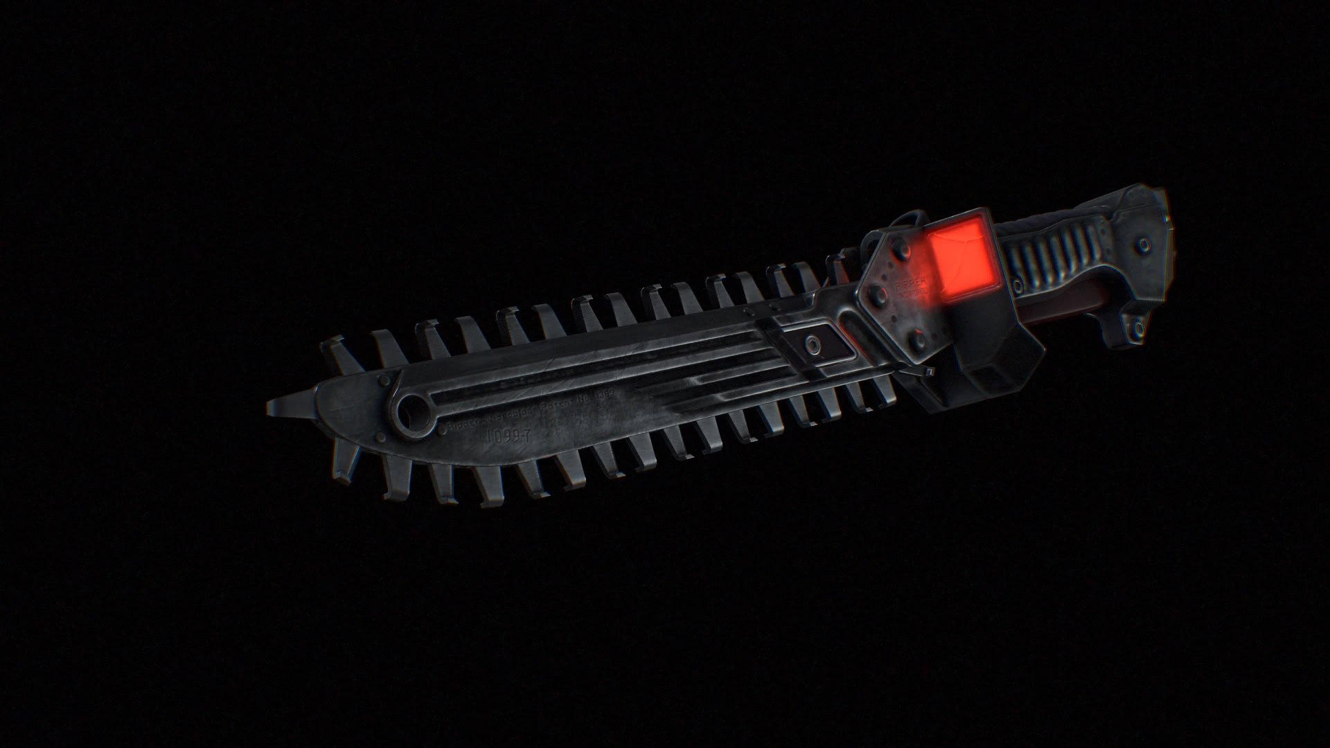 Вибронож "Потрошитель". Питаемое небольшой энергетической ячейкой, цепное лезвие разрывает и крушит свою цель.