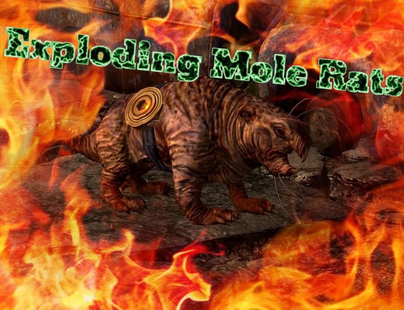 Добавляет кротокрысов с прикреплённой к ним взрывчаткой.Включает: Вооружённые кротокрыс: встречаются в зонах обитания Чертей и очень редко в Пустошах. Перси, ядерный кротокрыс: небольшой сюрприз для тех, кто его встретит :)Требования:JIP LN NVSE Plugin Установка и удалениестандартные. В тему - "Супермутанты-самоубийцы из Fallout 4".