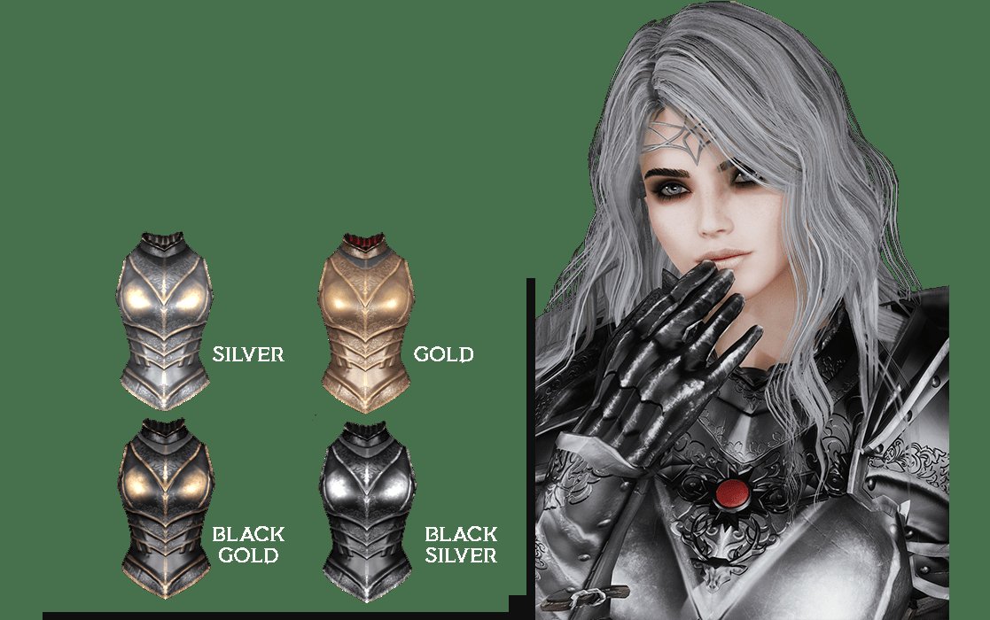 Комплект женской брони, соответствующий лору, с кучей материалов и цветовых схем. В комплекте уникальный меч и головной аксессуар.