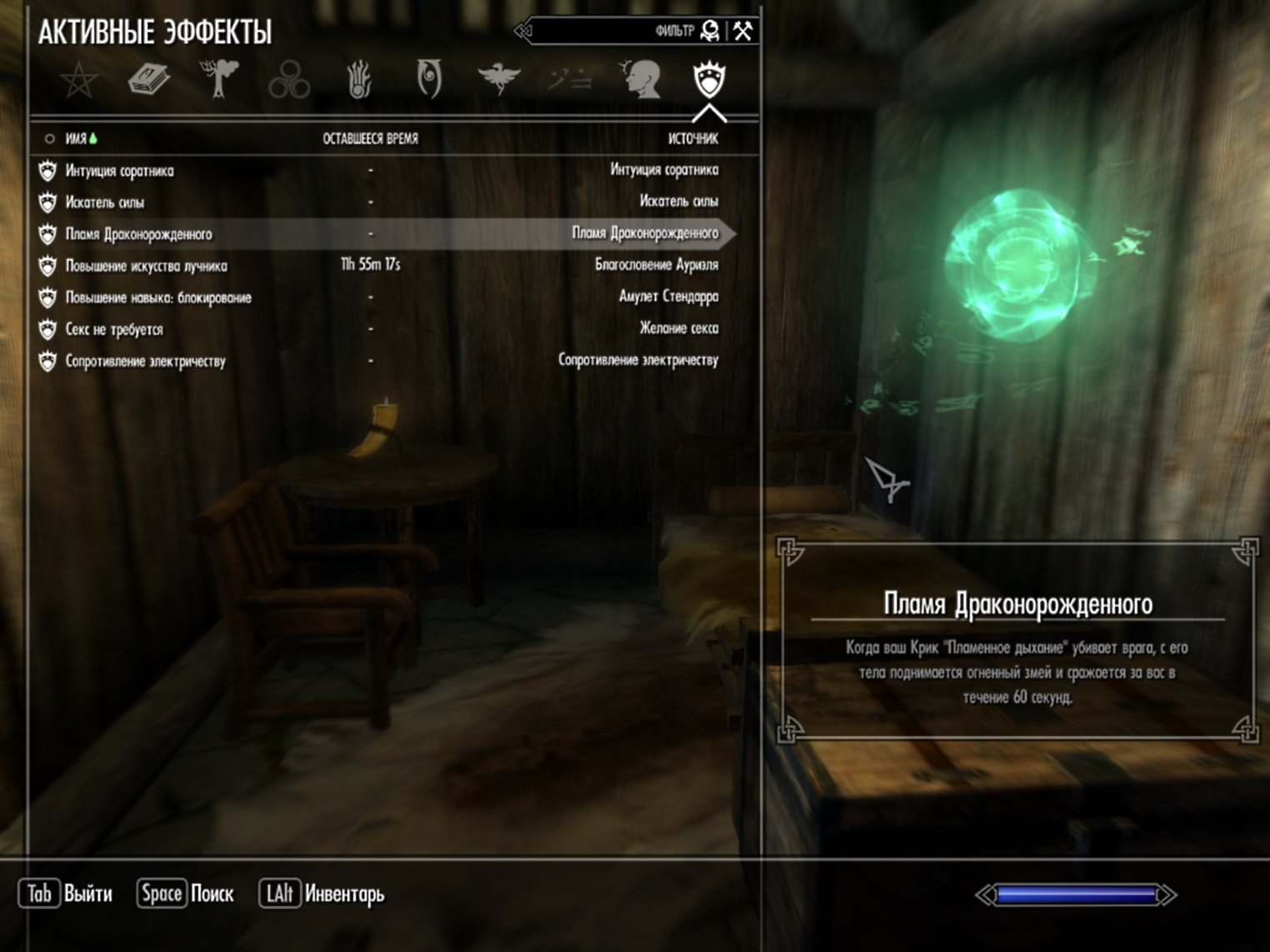Будучи экипированным, в меню Магии у вас появятся следующие Активные способности: