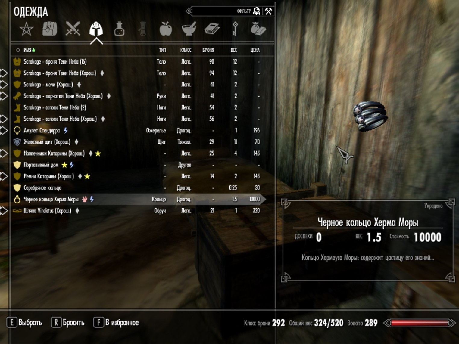 Данный мод добавляет в игру артефакт под названием "Черное кольцо Херма Моры" - маленькое колечко, которое наделяет своего носителя 5 Талантами из Черных книг.