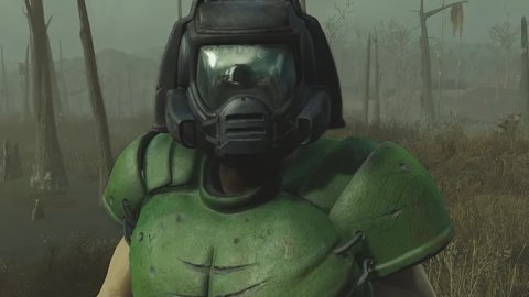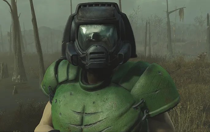 Говорят, что классическая зеленая броня морского пехотинца может защитить даже от сил самого ада. Пустоши определенно подходят под это описание. Характеристики: Хотя сама броня по цвету и форме похожа на боевую броню, между ними есть явные различия. Шлем закрытый, с отражающим козырьком. Зеленые наплечники прикреплены к нагруднику с помощью какого-то троса. Сам нагрудник стилизован под мускулистый торс и заканчивается на грудной клетке, в центре которой есть три сл...